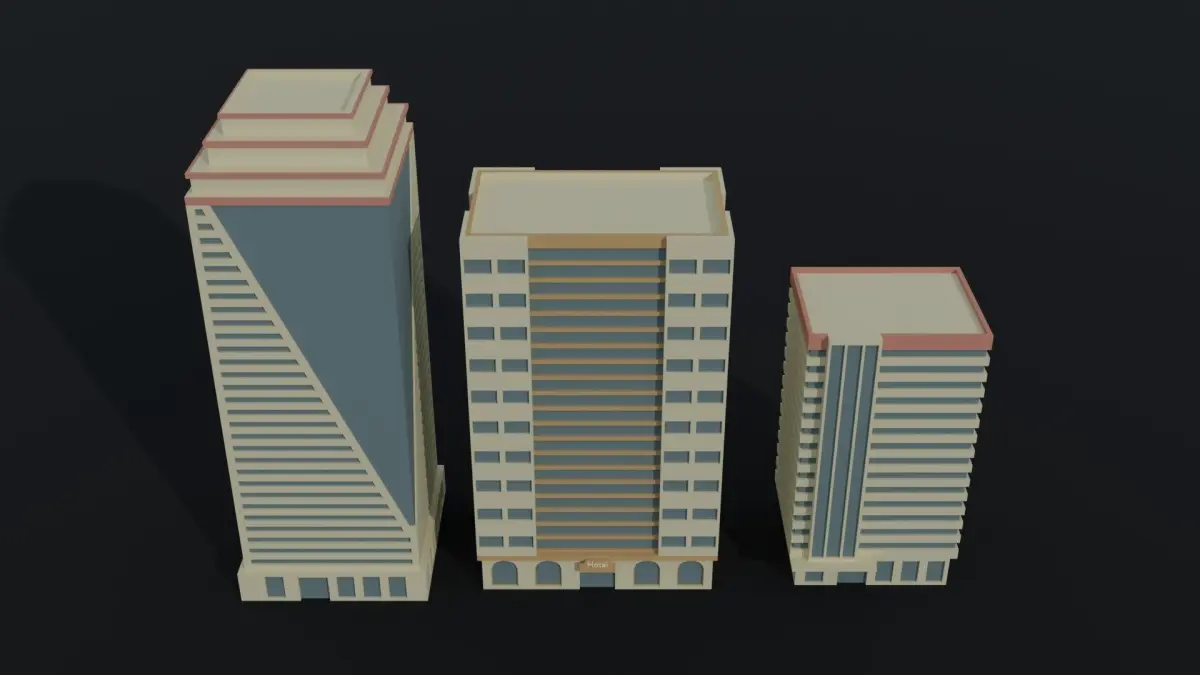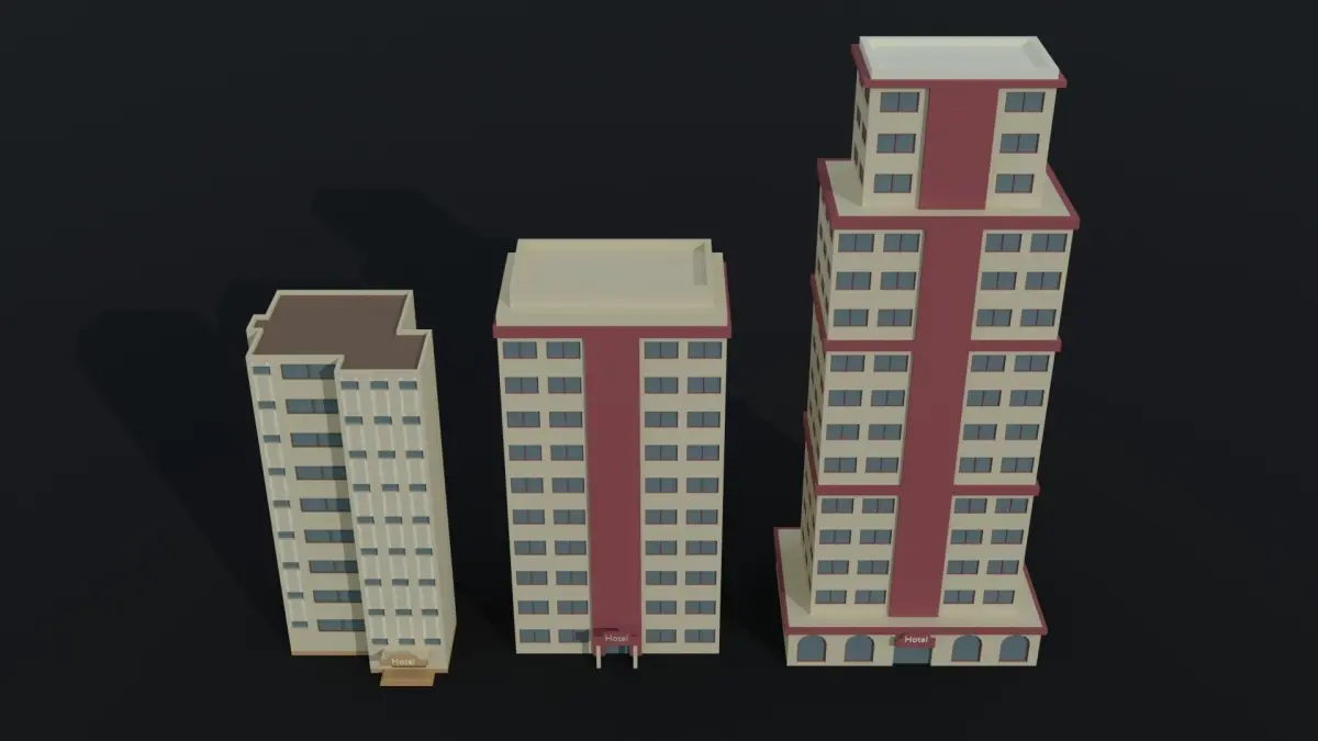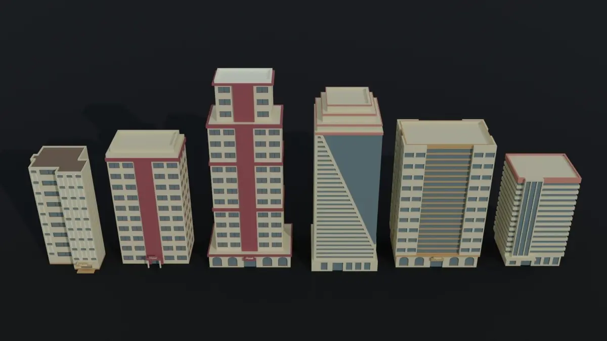 This is cartoon city hotel kit Polygonal Style(6 objects)