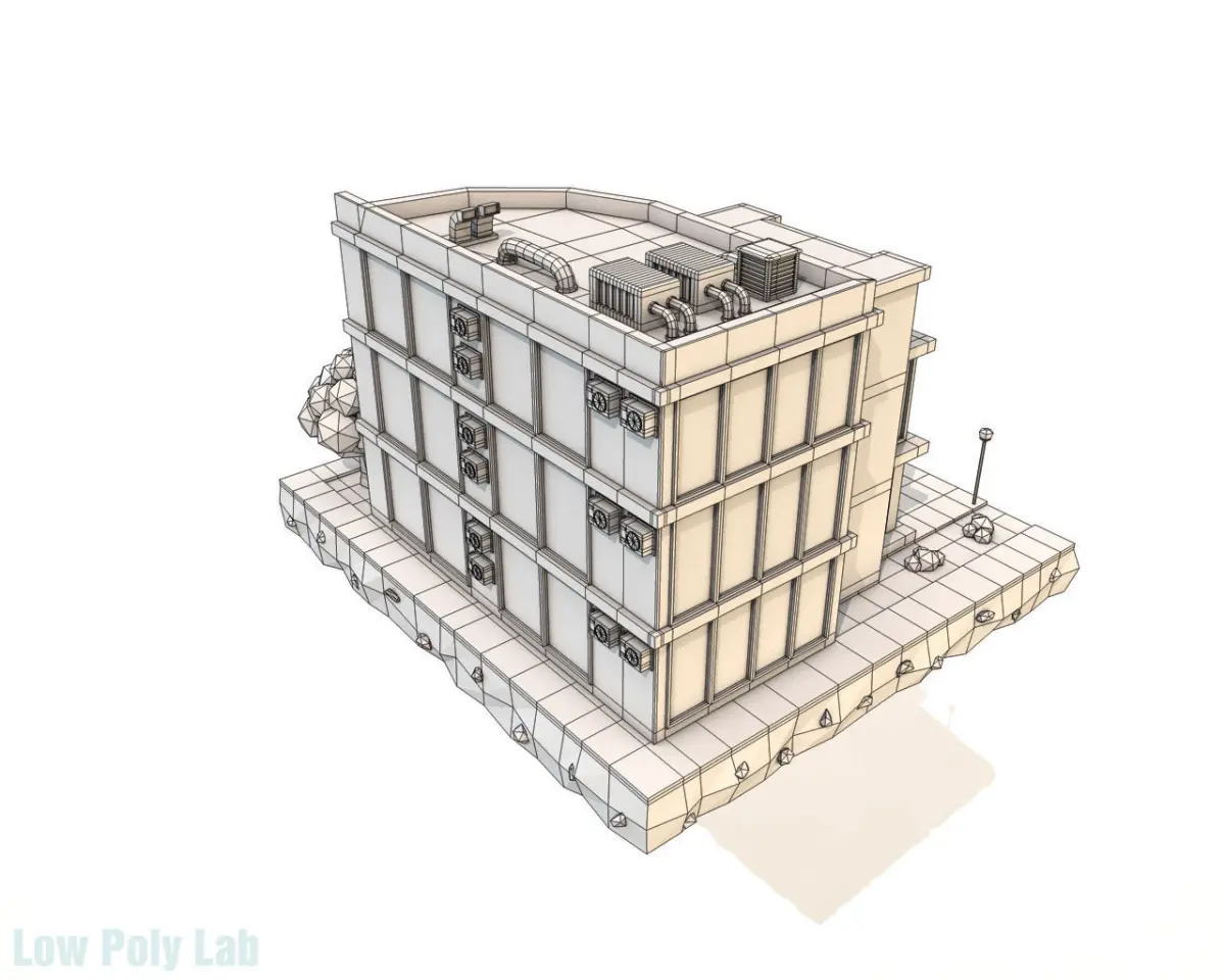 Present to you the low poly hotel building. The 3D model was created in modern style with acute forms and has level of detail like hotel from real life. Accurate forms of polygonal shapes, give this model more simplicity and elegance. Model was originally created in Cinema 4D. Rendering standard.