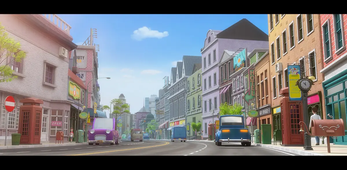 Cartoon City Street Scene