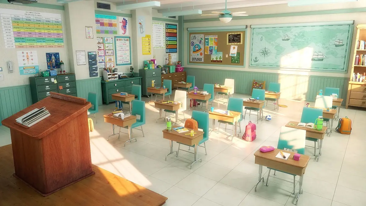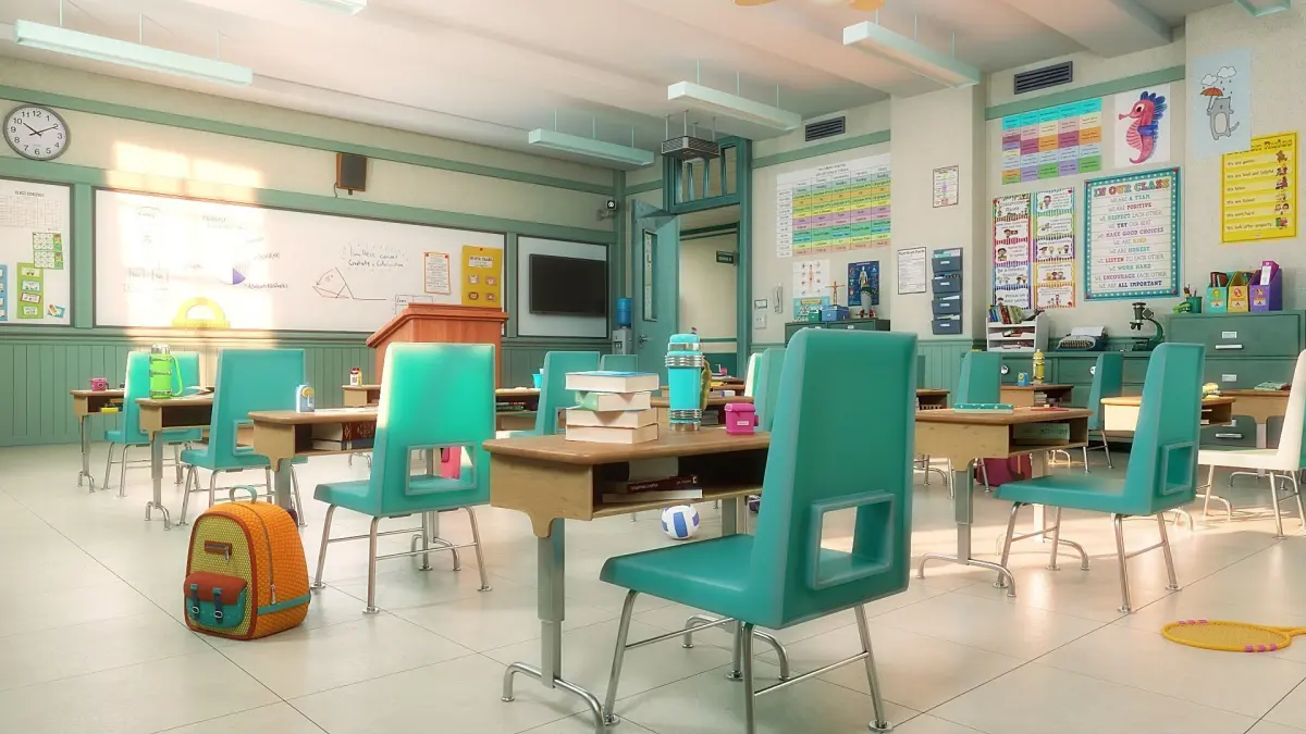 HIGH QUALITY CARTOON CLASSROOM CORRIDOR SCENE