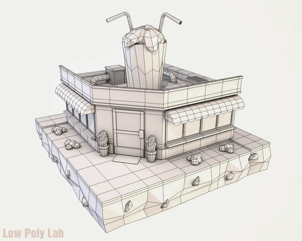 Features of Low Poly Cocktail Cafe