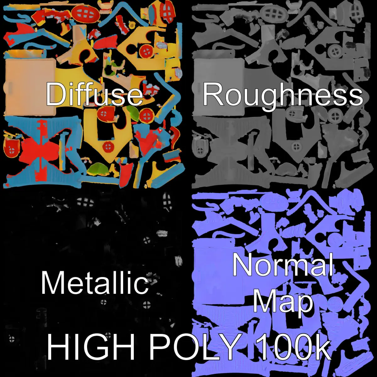 This 3D Cartoon Cottage Model Pack offers versatile detail levels including low-poly for mobile (1000 triangles), middle-poly for environment (10,000 triangles), and high-poly for detailed rendering (100,000 triangles). Perfect for animation, game development, and VR experiences, this model stands out with its vibrant color palette and charming design. PBR textures, including Diffuse, NormalMap, and reflection/roughness/metallic, provide realism within any modern rendering engine. All textures are 4096x4096 and accurately unwrapped with no overlapping UV. Ideal for fantasy-themed projects, children’s animations, or cozy village simulations, it brings whimsy and charm to your scenes. The first image is the reference used for creating the 3D model. Examine the preview images carefully to evaluate the model's quality, see the topology and polygonal mesh in the WIRE and WEB 3D Preview. If you like this model, please leave a comment and give a like.