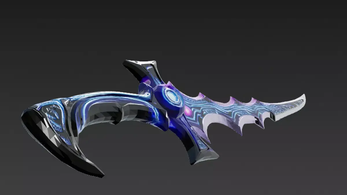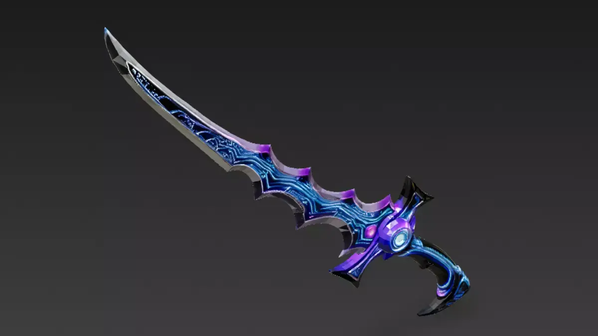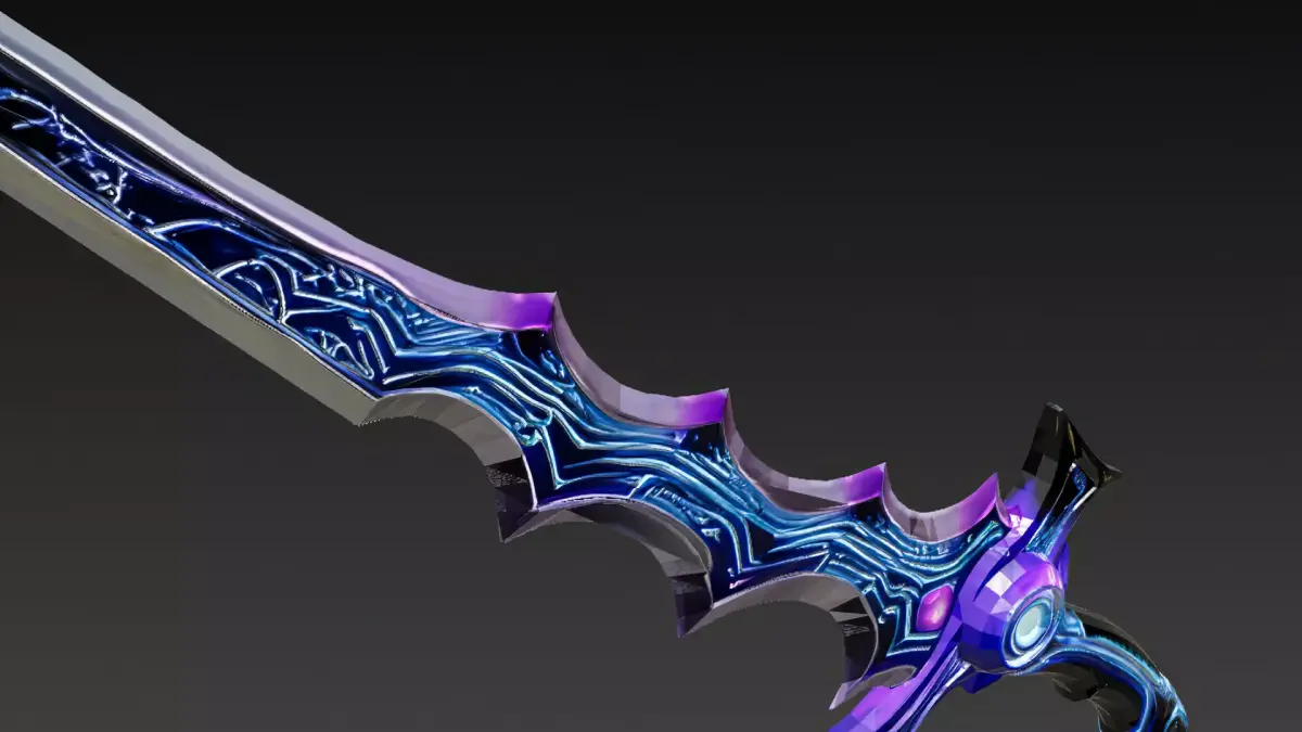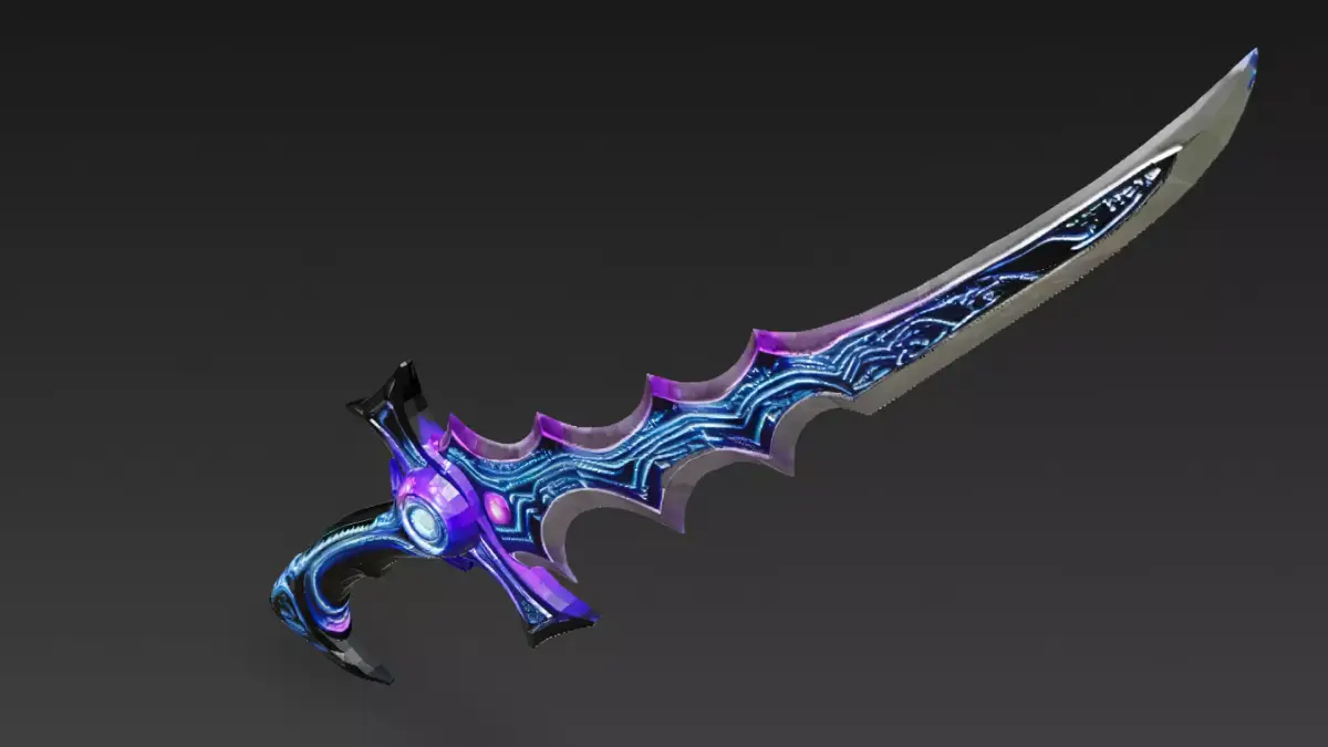 This is a highly detailed 3D model of a cartoon-style cyberpunk Kris sword, designed with a unique wavy blade silhouette and futuristic cyber details.