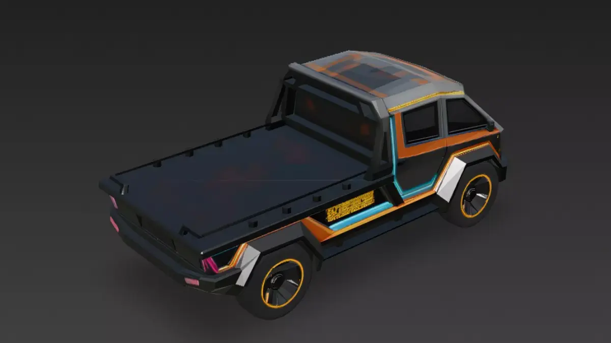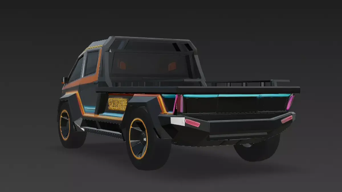 Description:This is a stylized cartoon cyberpunk truck designed with bold shapes, neon accents, and futuristic sci-fi aesthetics.