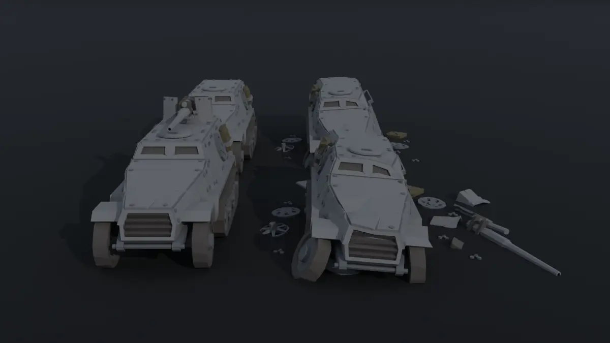 This is cartoon Dieselpunk armored cars Polygonal Style(4 object)