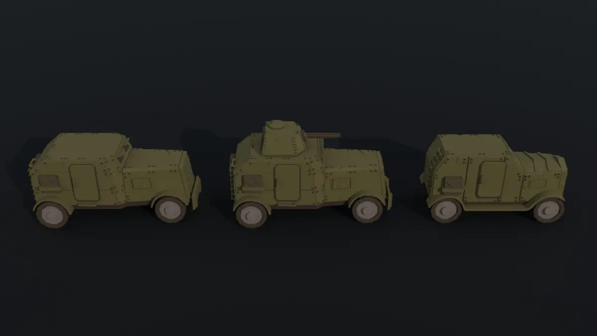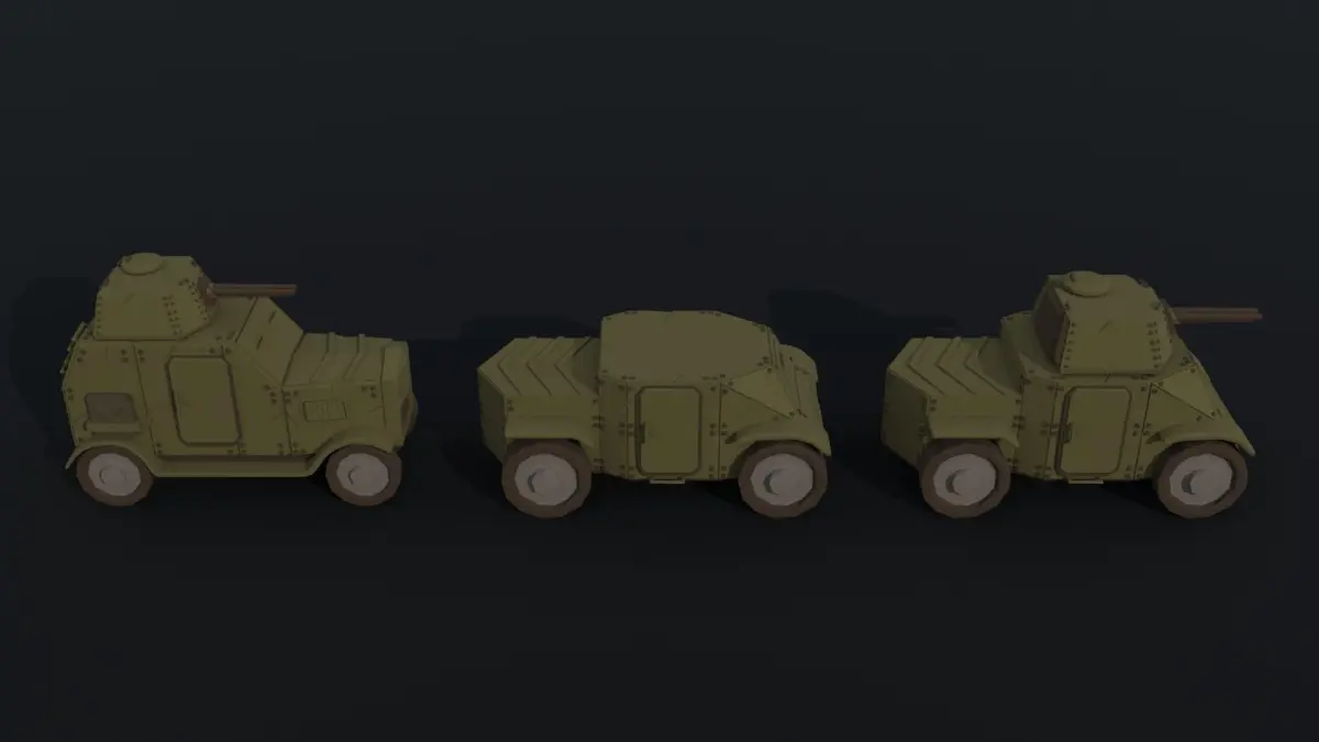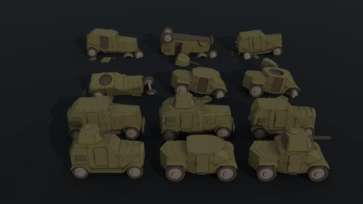 This is cartoon Dieselpunk armored cars Polygonal Style(12 object)