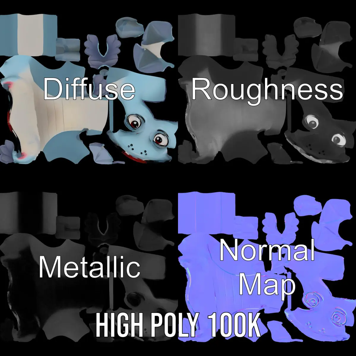 This cartoon dinosaur character model pack includes three levels of detail, making it versatile for different applications. With textures in PBR, Diffuse, NormalMap, and reflection/roughness/metallic, it is compatible with modern rendering engines, ensuring realistic surface properties. The model can be utilized for games, animation films, virtual reality experiences, and educational applications. Fully unwrapped with no overlapping UVs, it assures perfect texture mapping. Textures are high-resolution at 4096*4096, offering crisp detail. The first image is the reference used for creating the 3D model. It is important to carefully evaluate the quality of the model by examining the preview images that display the topology and polygonal mesh. These previews (WIRE and WEB 3D Preview) clearly demonstrate how accurately the model matches the original reference and how well the geometry has been executed. If you enjoy the model, please like and leave a comment!