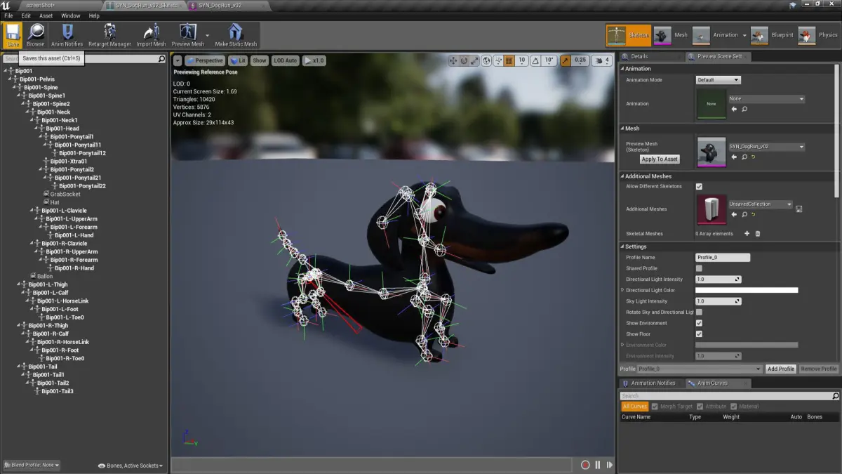 Low poly of Cartoon Dachshund with animation state machine, 10 animations, 1 blend space, 4 textures + 2 dynamic shirt materials and a physic asset. Can be used in all genres of games.