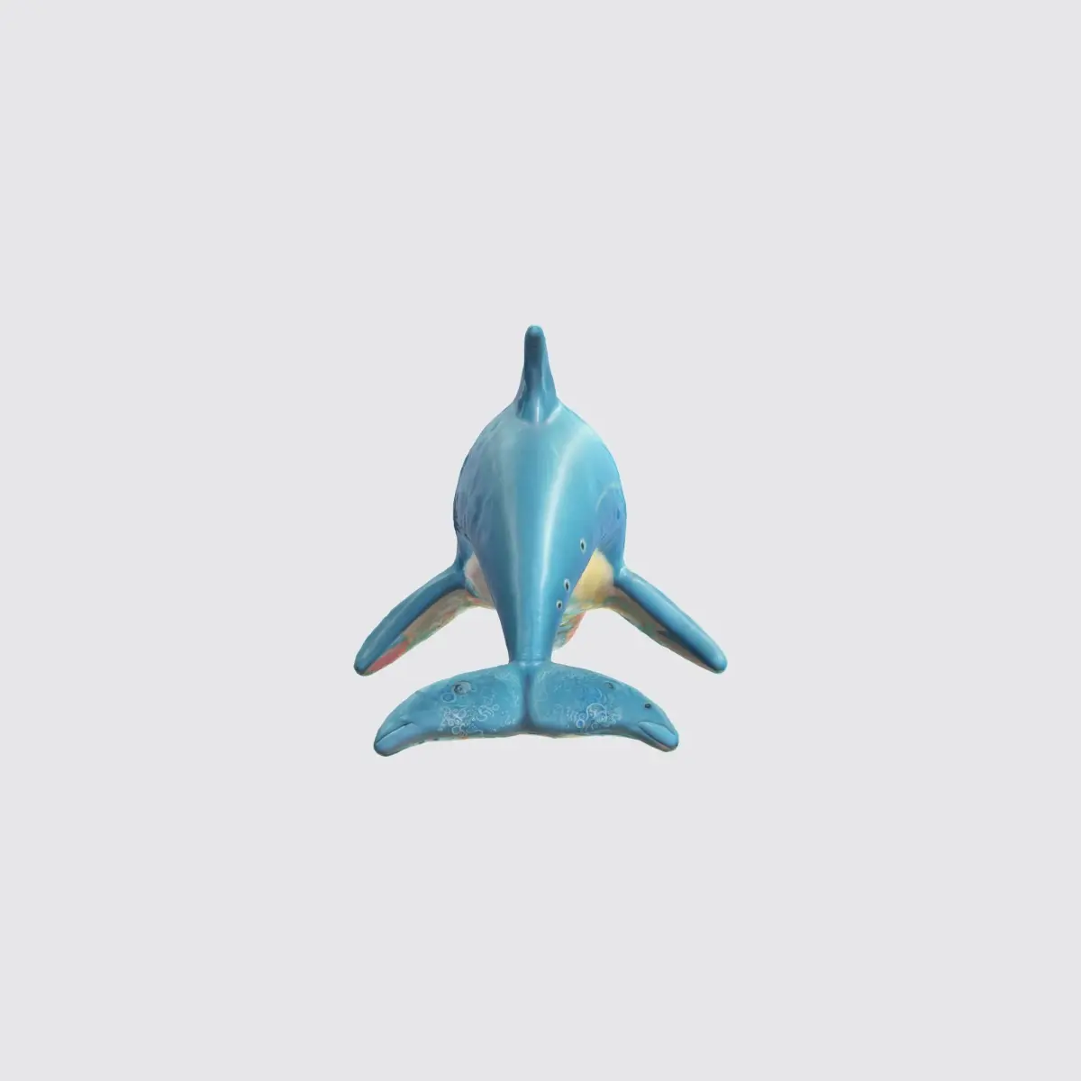 cutout of cartoon dolphin characterd happy swimming, A blue dolphin figurine with a pink accent , floating