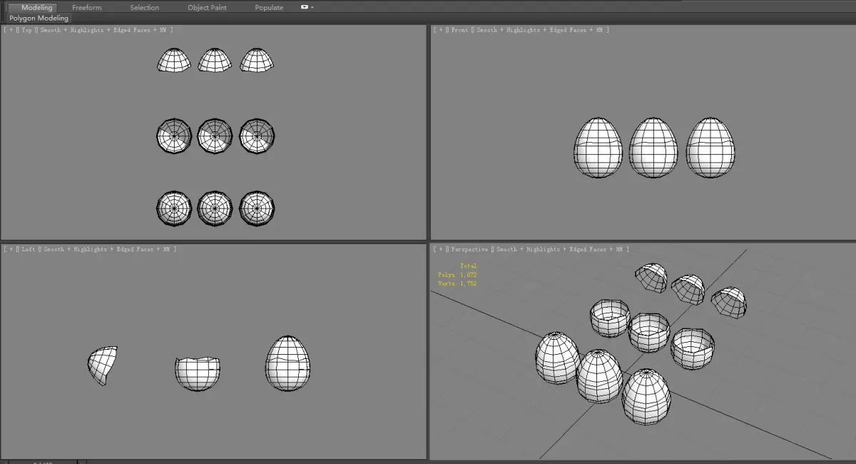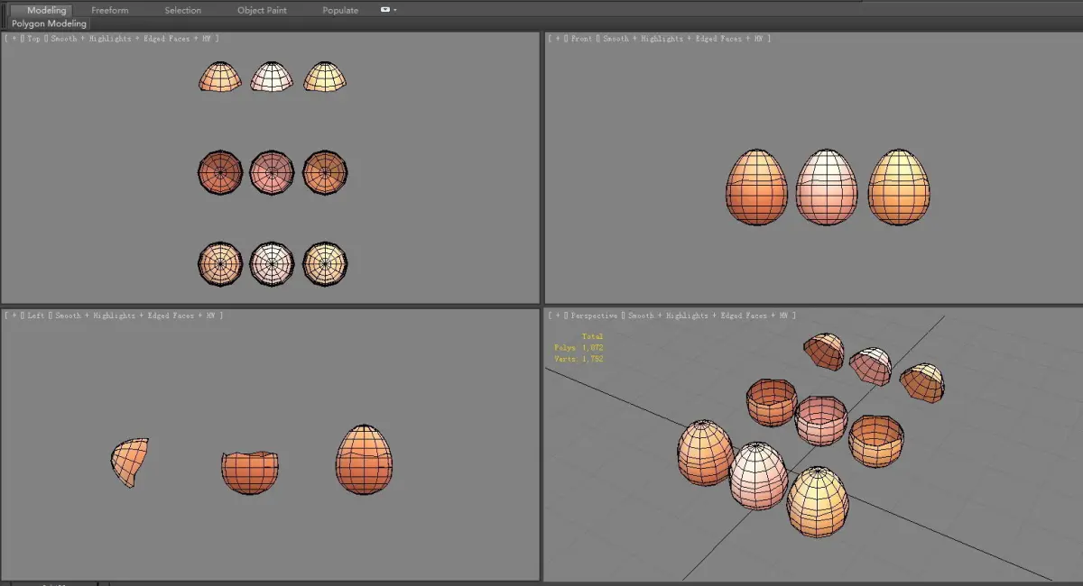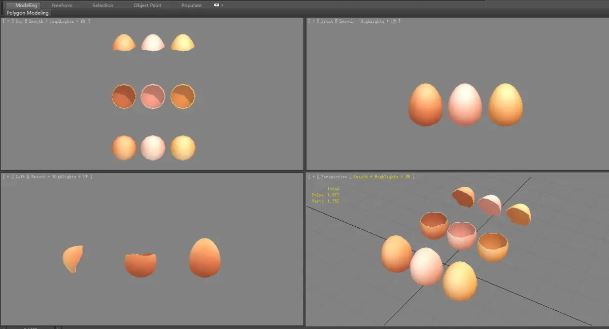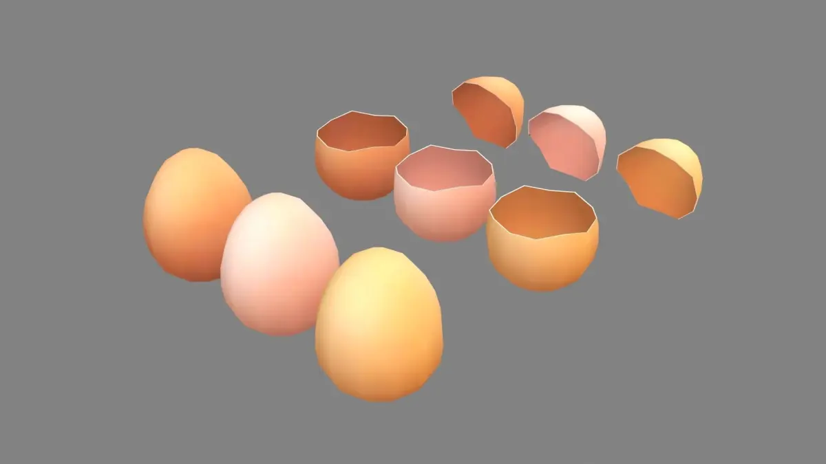 Cartoon eggs - broken egg shell Low-poly 3D model