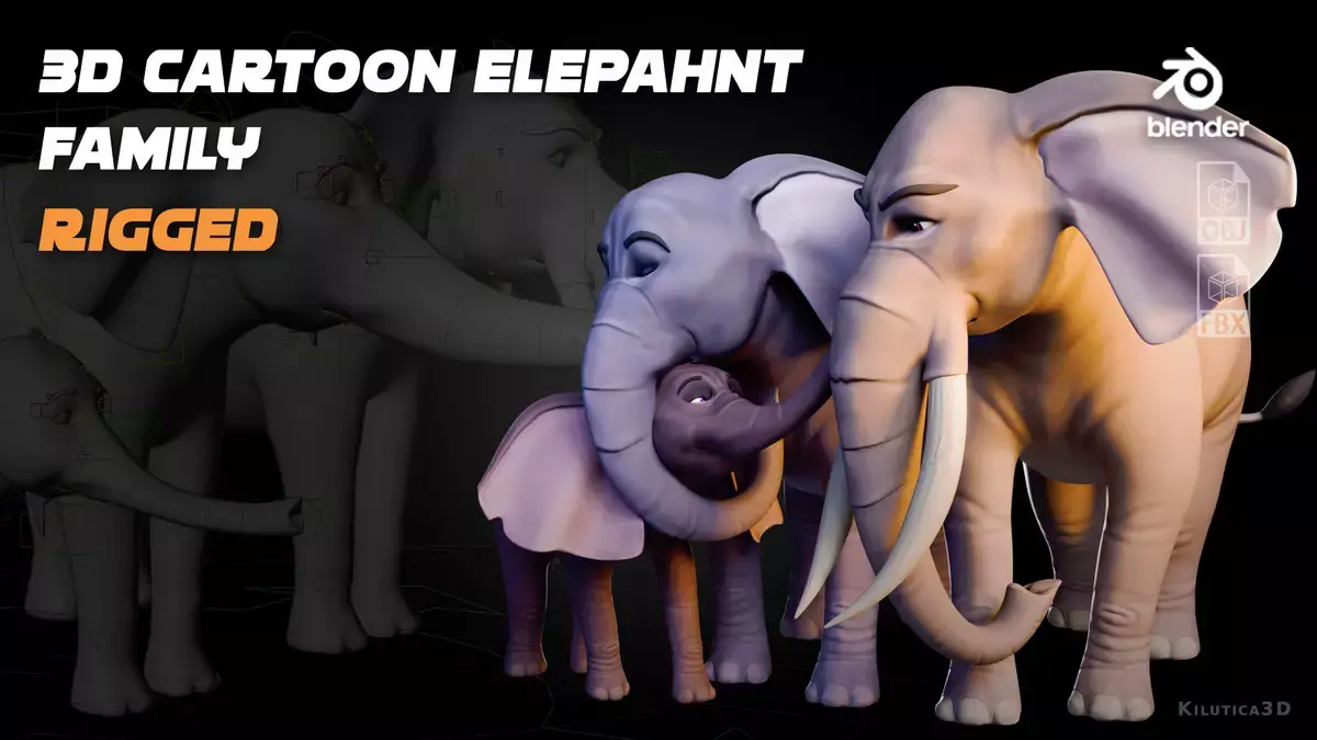 Introducing the Cartoon Elephant Family Pack, a charming trio of stylized, fully rigged elephants—Male, Female, and Cub—perfect for animations, games, educational projects, and storytelling.Built with clean quad-based topology, all three models feature efficiently mirrored UVs, high-quality textures, corrective weight painting, and custom Rigify rigs for smooth, expressive animation.Each elephant comes with modeled inner mouth parts (tongue, teeth, gums) and a fully functional facial rig for dynamic emotions and lip-syncing.The Female Elephant and Cub are unique mesh variations derived from the base male model with adjusted anatomical proportions. The Female and Cub also have no tusks for authenticity.Because they share the same UV layout, textures can be swapped freely between all three models, making asset customization effortless.Formats Provided