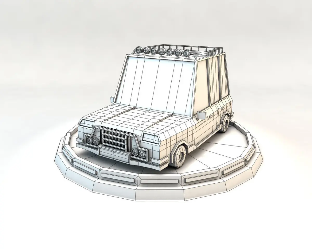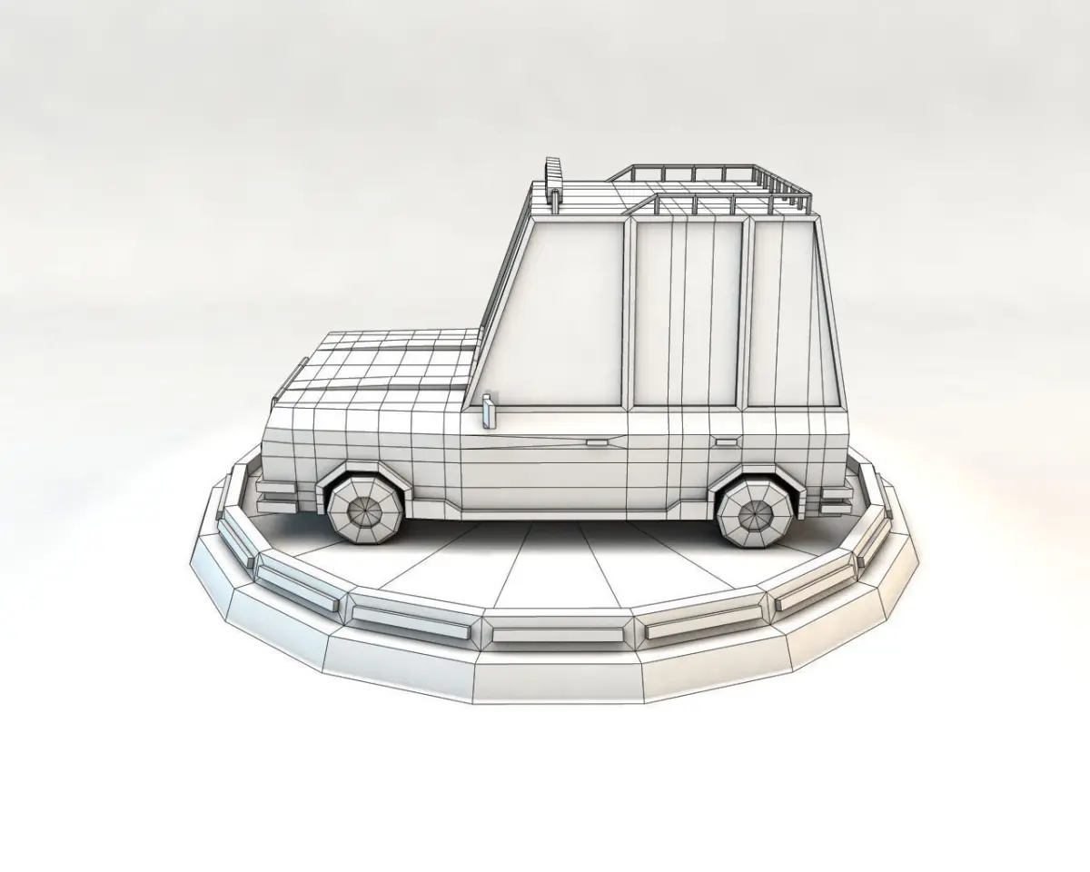 Present to you a low poly family car in white colors. The 3D model was created in minimalist style with acute forms. The features of the 3D model are bumper lattices and vehicle interior.