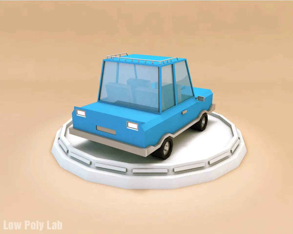 The 3D model was created in minimalist style with acute forms. Low Poly Family Car has high level of detail. All this parts shows the completeness of the scene.