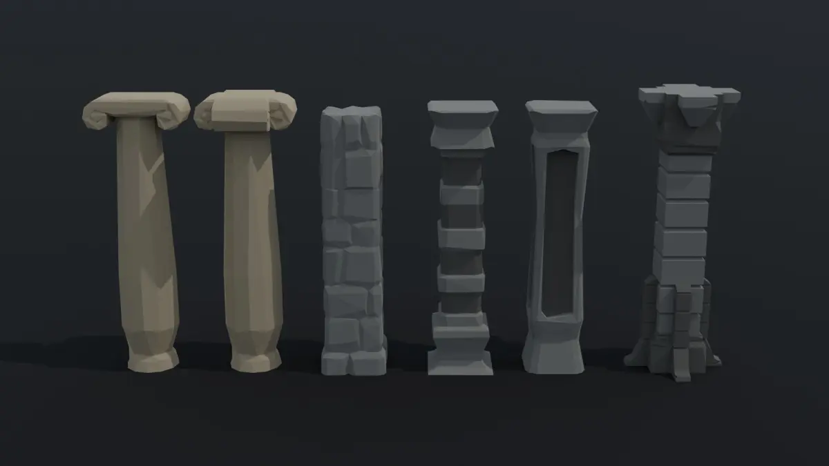 This is cartoon fantasy column Polygonal Style(6 object)