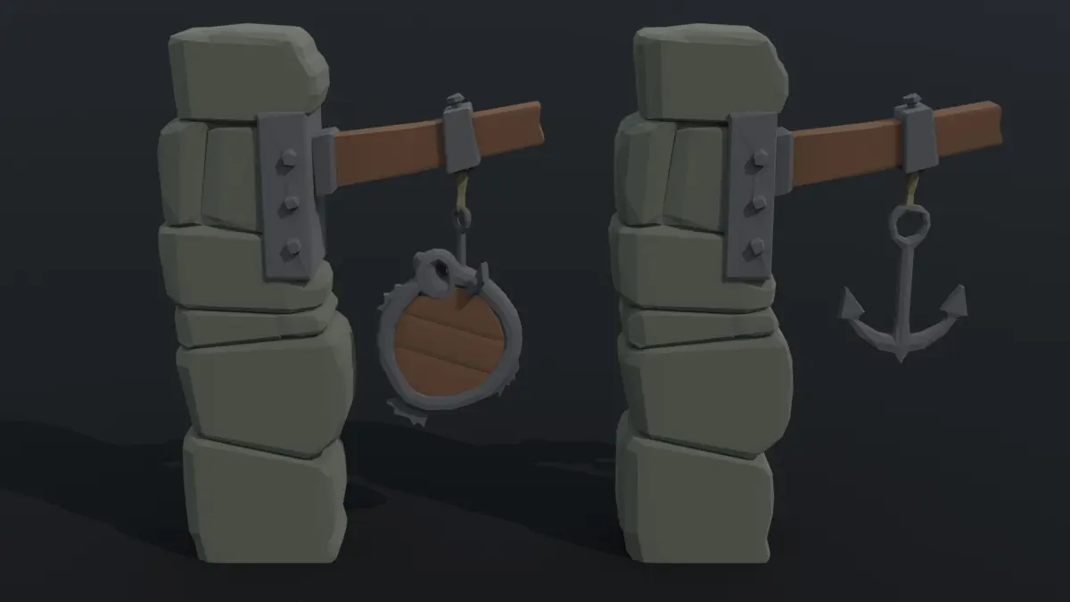 This is cartoon fantasy port road sign Polygonal Style(2 object)