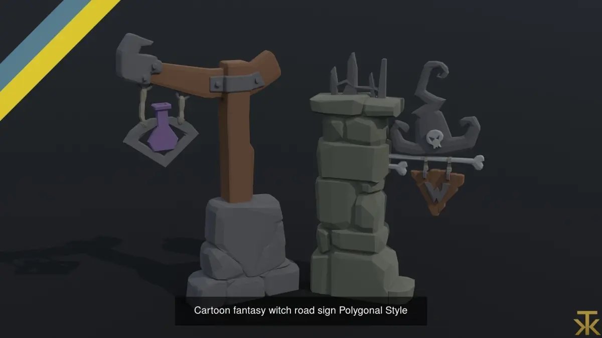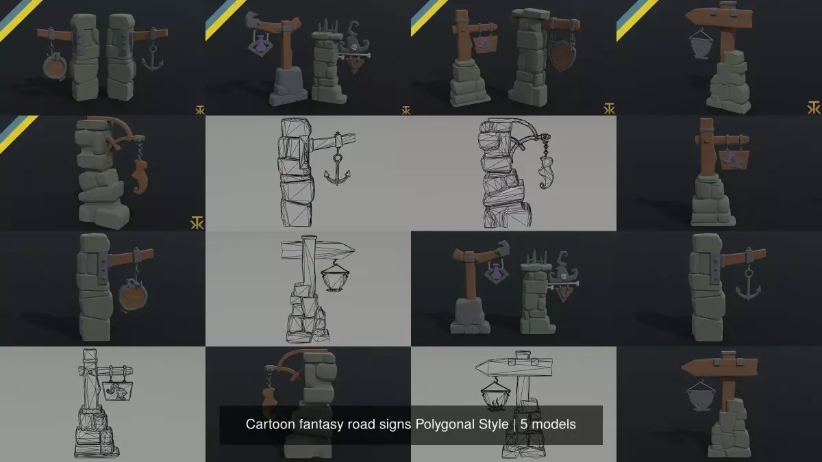 This is cartoon fantasy road signs Polygonal Style(8 object)