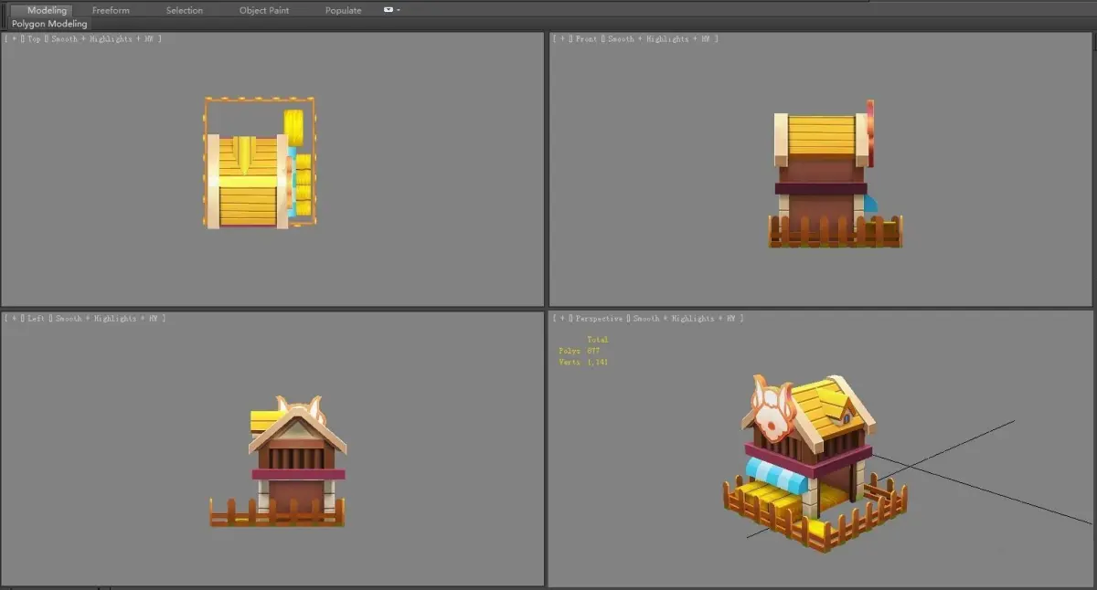 Cartoon farm buildings - cow shed - pigsty - sheep pen Low-poly 3D model