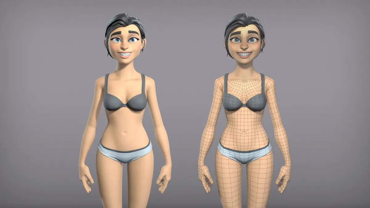 This character was created for multi-purpose use: anatomy study, rigging and animation, games, unique character design, can be dressed with different clothes. 3d model has mouth bag with teeth and tongue.