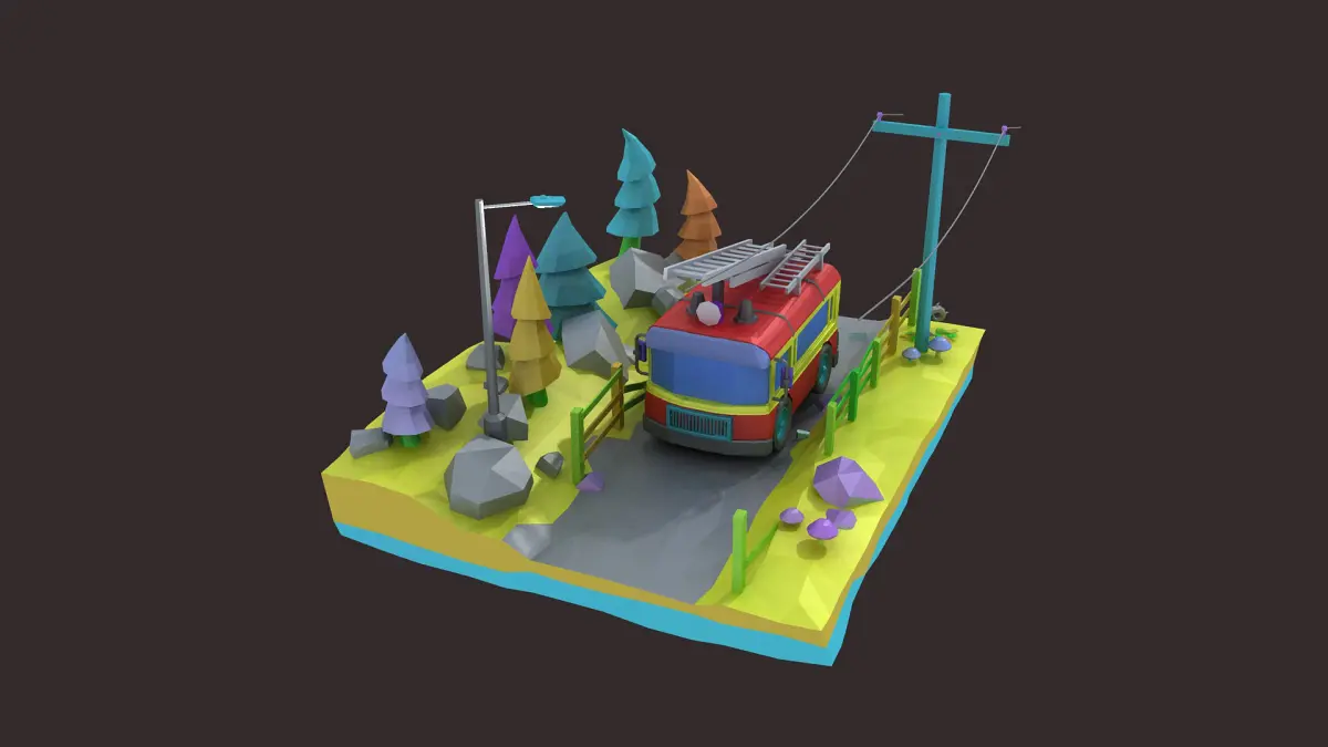 Cartoon Fire Engine Cartoon Car Collection Toon Vehicle 3D model