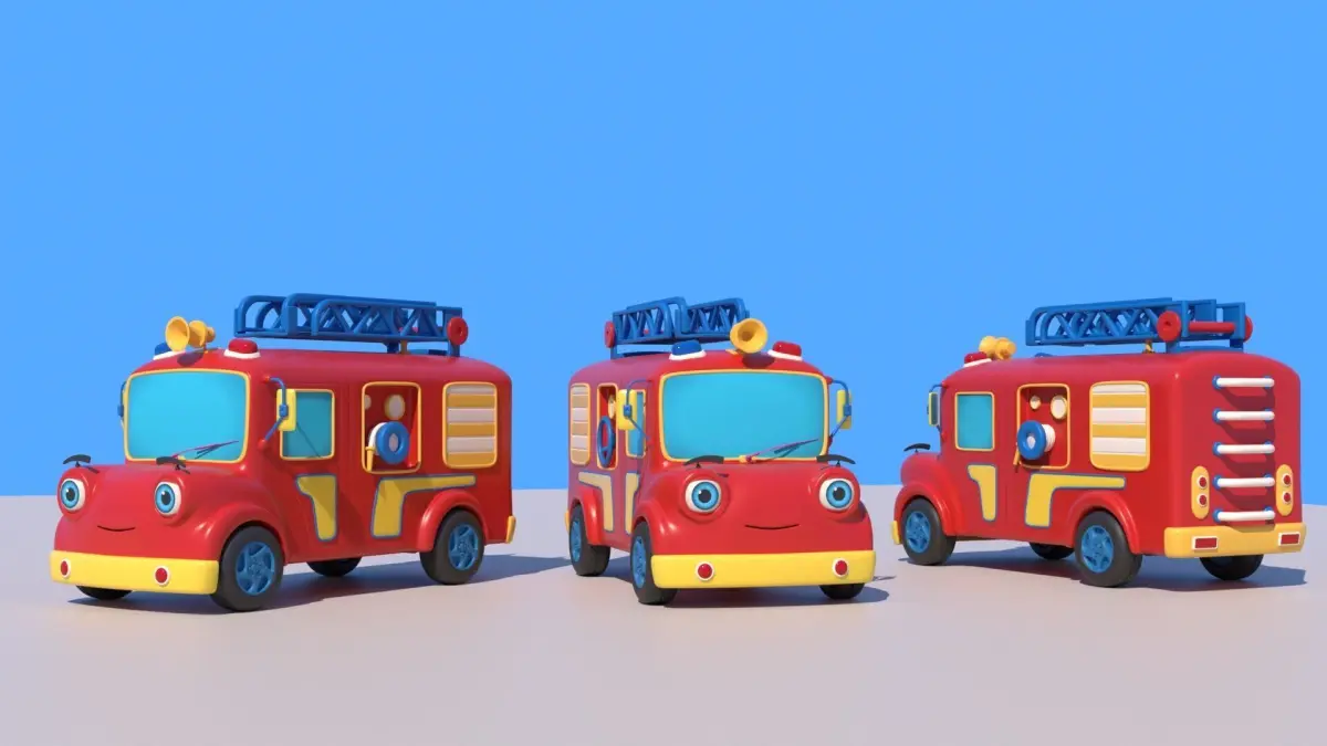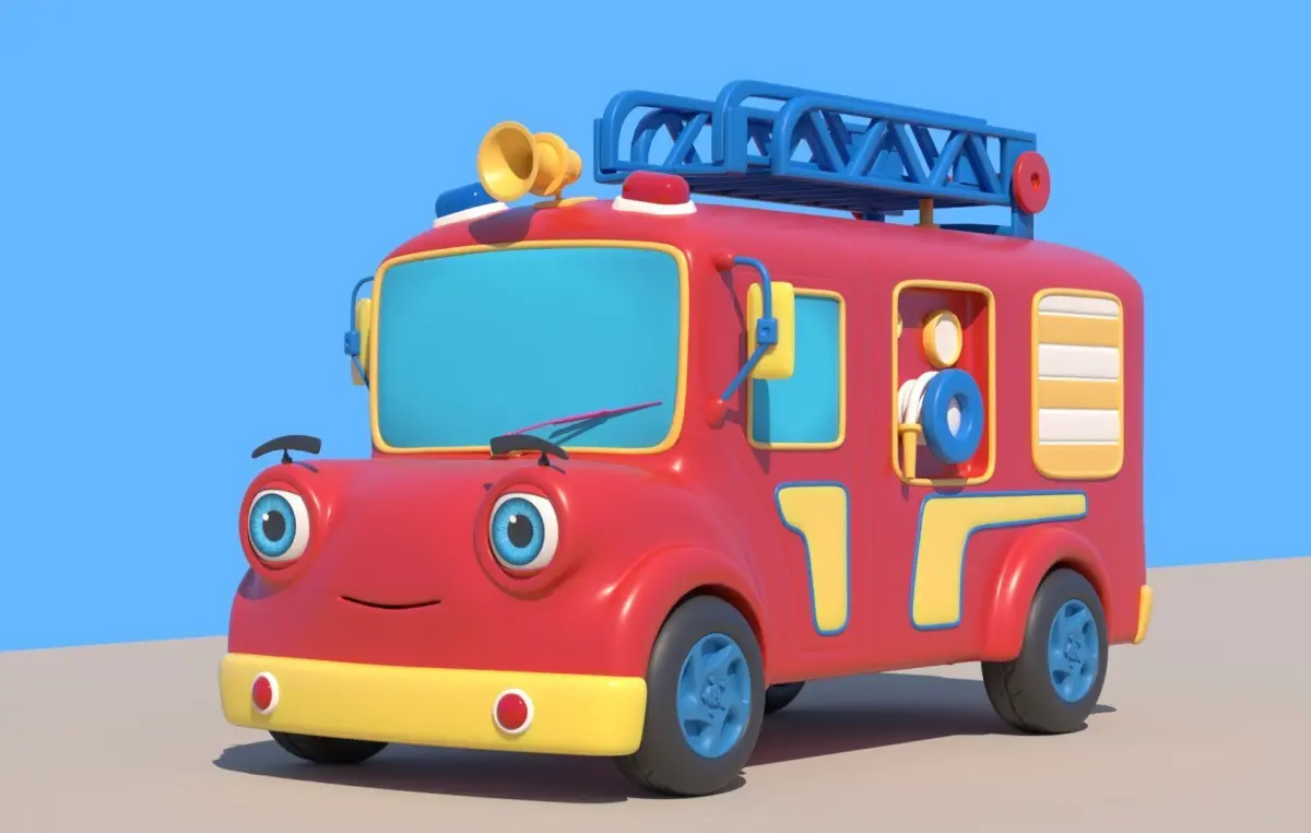 Add a touch of personality and joy to your 3D scenes with this delightful fire truck character!