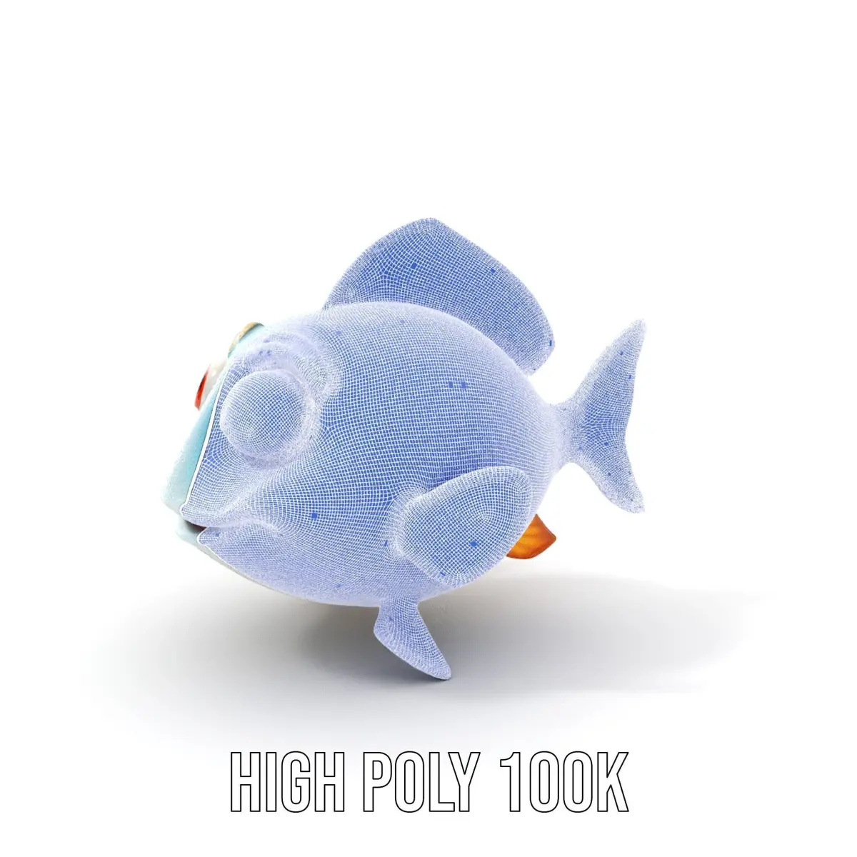 This cartoon fish model pack features three levels of detail: low-poly (1000 triangles) for mobile, middle-poly (10,000 triangles) for environments, and high-poly (100,000 triangles) for production rendering. Ideal for animation, games, and educational projects, this model offers vibrant and engaging visuals. Textures include PBR, Diffuse, NormalMap, reflection/roughness/metallic, all in 4096x4096 size, ensuring compatibility with modern rendering engines. Accurately unwrapped with no overlapping UVs. The first image is the reference used for creating the 3D model. It is important to carefully evaluate the quality of the model by examining the preview images that display the topology and polygonal mesh. These previews (WIRE and WEB 3D Preview) clearly demonstrate how accurately the model matches the original reference and how well the geometry has been executed. Please like and leave a comment if you enjoyed this model.