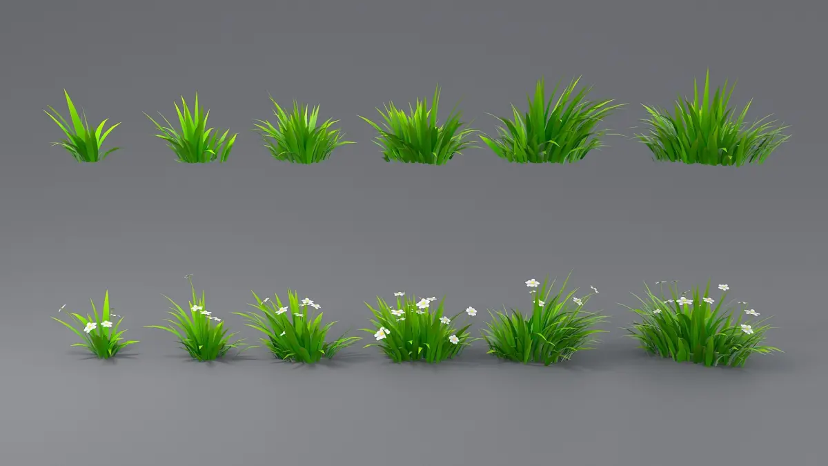 Grass - 12 variations (6 with flowers, 6 without flowers) - polycount: up to 9249 product ID: 1904093