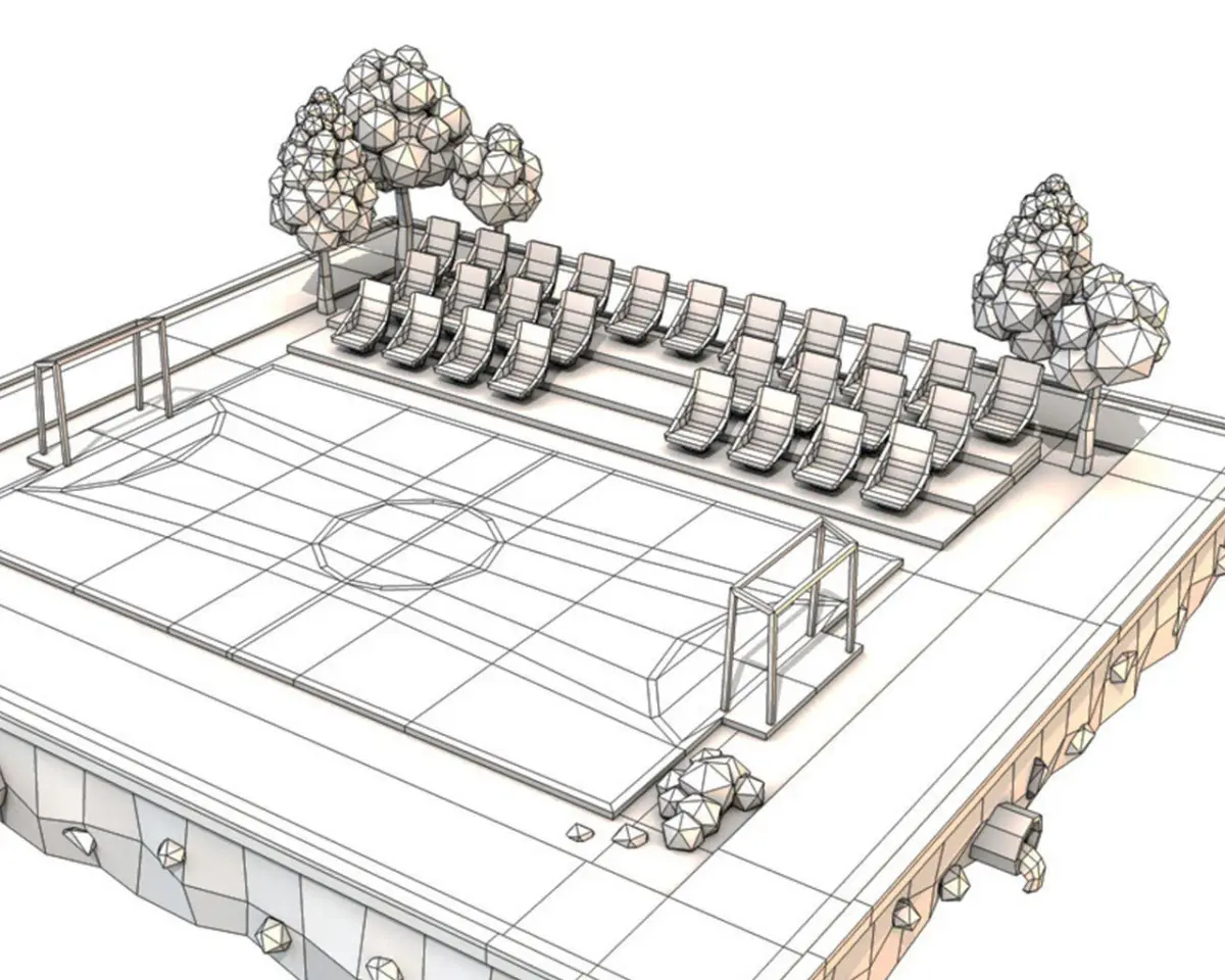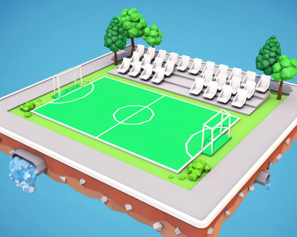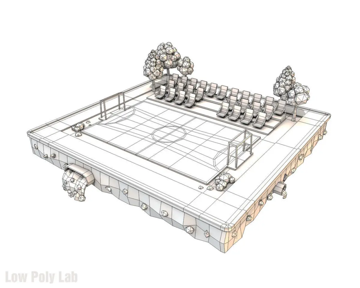 Present to you the low poly football field. The 3D model consists of the football field with goals and grandstands. Also in the low poly football field included the platform, bushes, street lamps, trees.., as a scene environment. Accurate forms of polygonal shapes, give this model more simplicity and elegance. Model was originally created in Cinema 4D. Rendering standard.