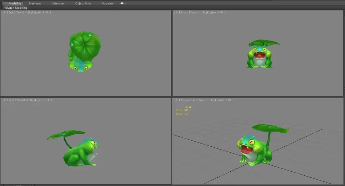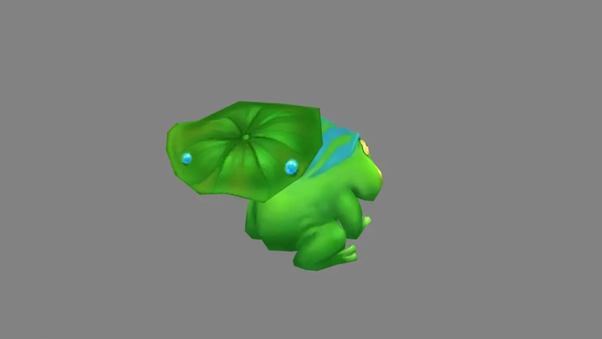 Cartoon frog under lotus leaf Low-poly 3D model