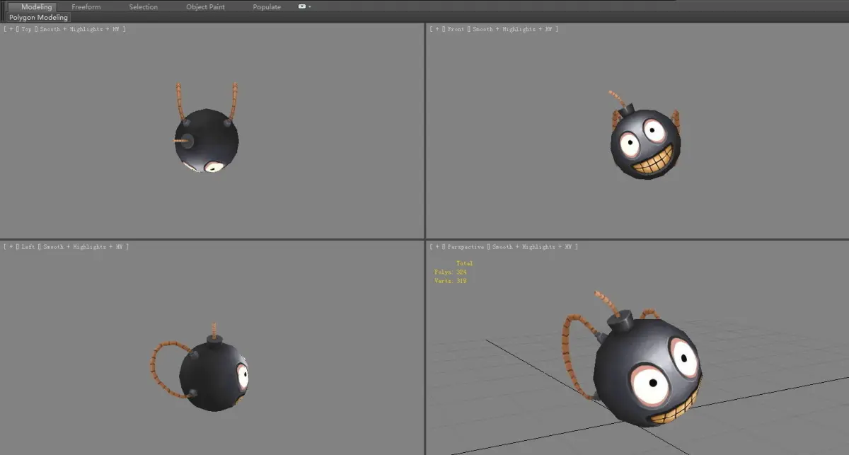 cartoon funny backpack - smiley bomb Low-poly 3D model