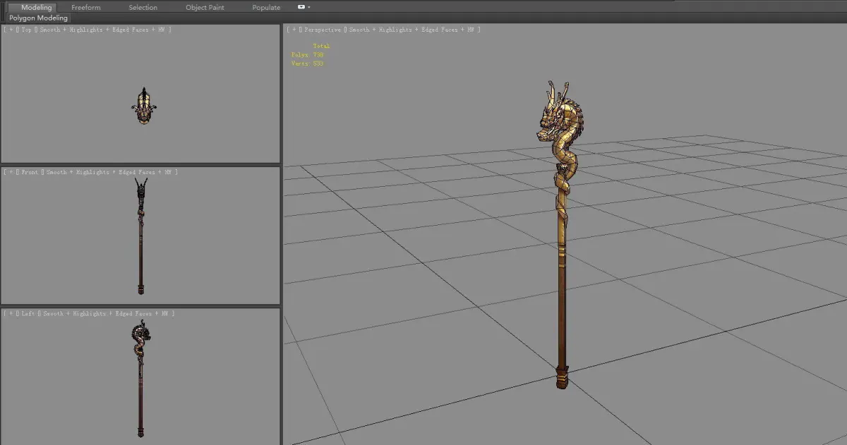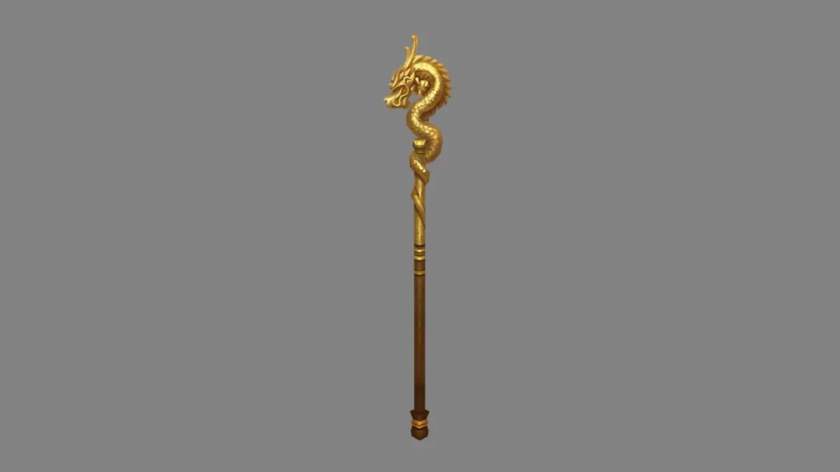 Cartoon Golden Dragon Cane Low-poly 3D model