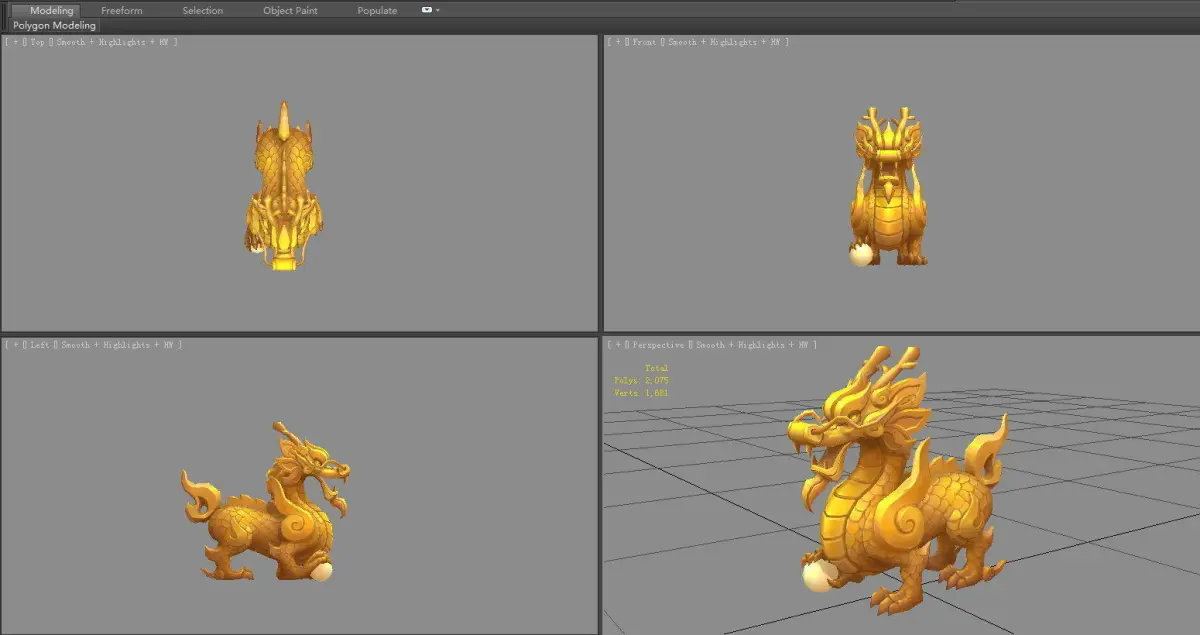 Cartoon Golden Dragon Sculpture - Dragon Ball Low-poly 3D model