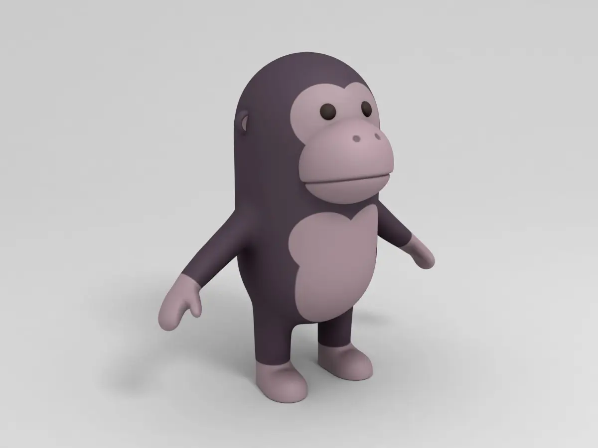 Gorilla character 3d model in cartoon style.