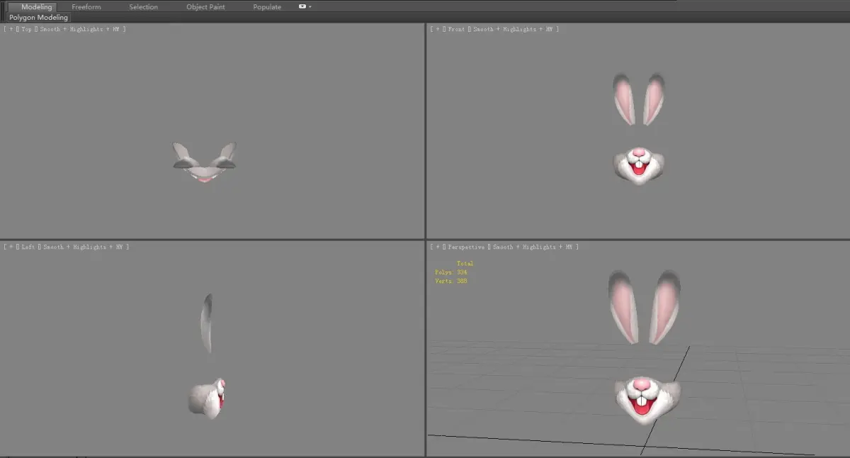 Cartoon grey rabbit mask decoration Low-poly 3D model