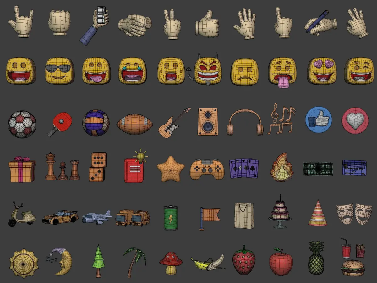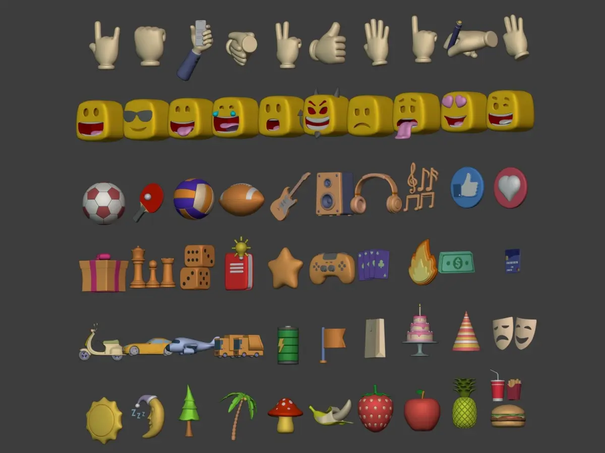 Cartoon Hand - Icon Pack - Smiley Sun Game Car Airplane Ball Low-poly 3D model