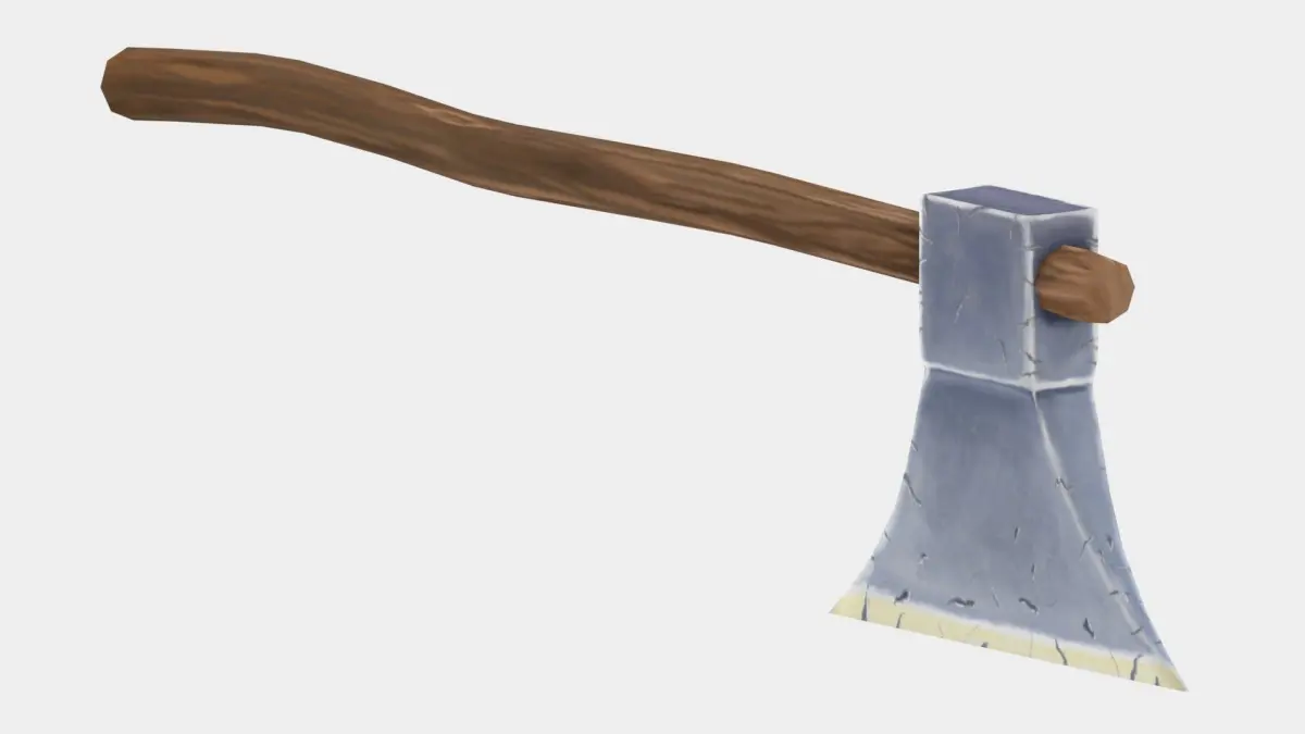 A simple low-poly axe with hand-painted texture consisting of 2 parts - metallic and wooden. Metal part has some cracks caused by axe usage as well as highlights. Wooden part is slightly bent and uses painted wooden texture.
