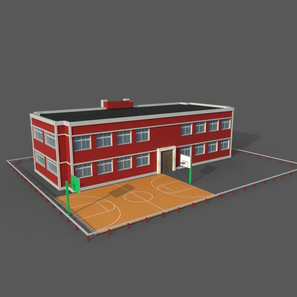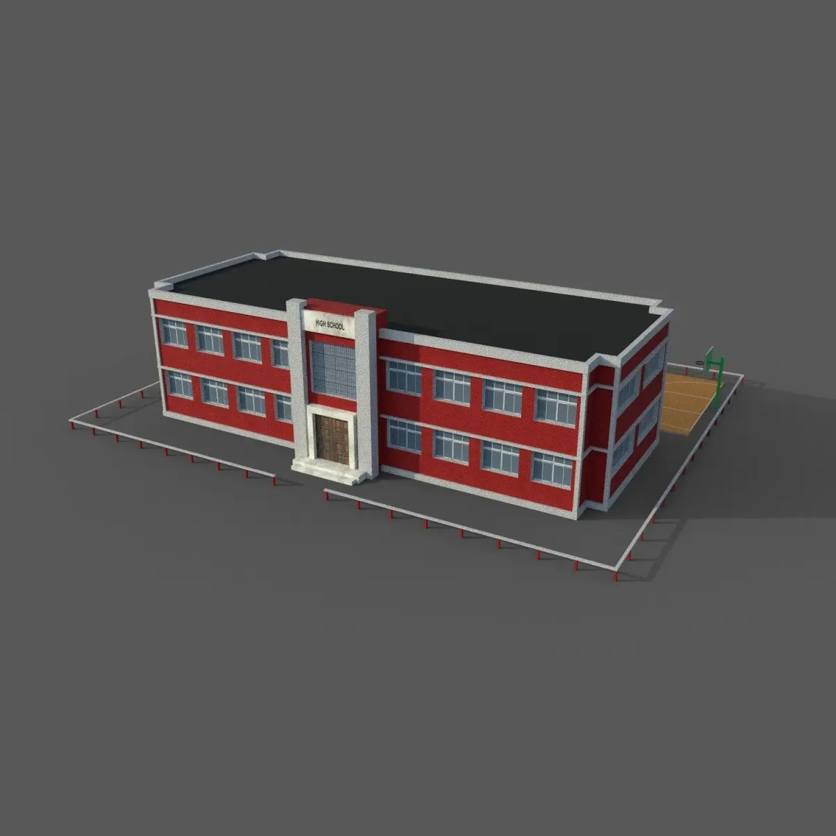 3d model of High School Building. Game ready realtime pbr workflow