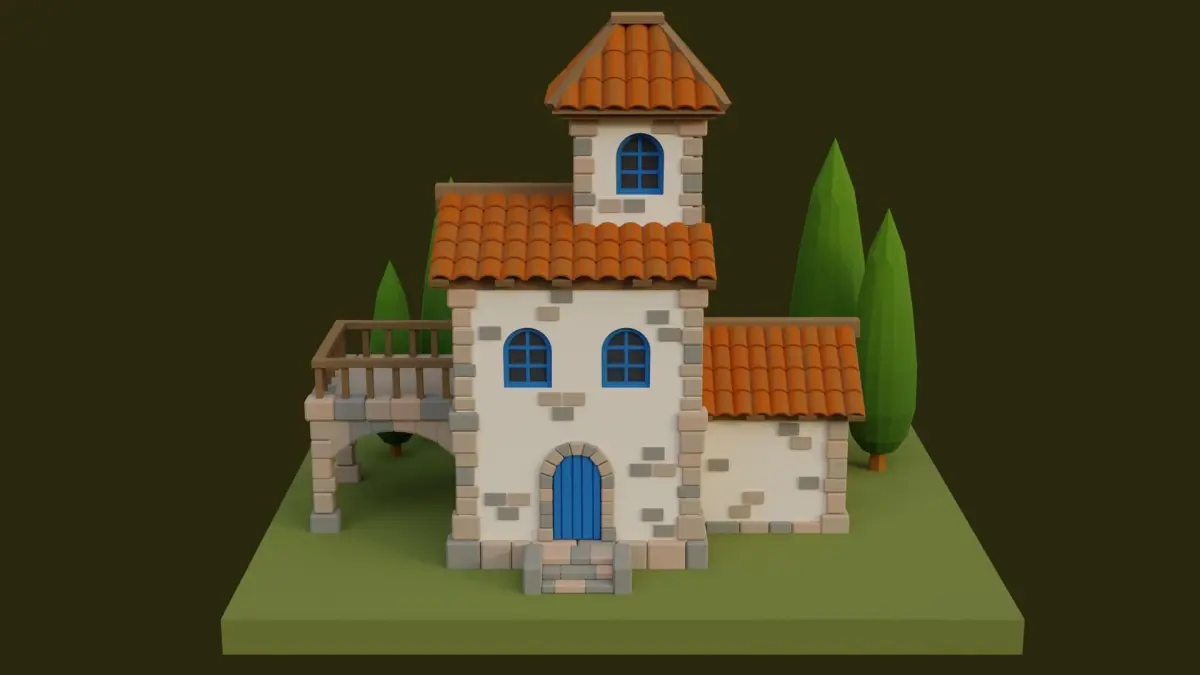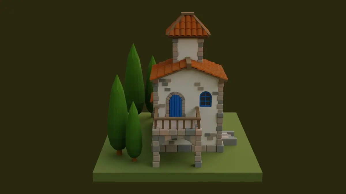 I created this Cartoon House using Blender 3.0.1. I used a 2d image as the reference. Doors are openable. House, Ground, Doors a, and Trees are separate objects. No textures were used for this model.