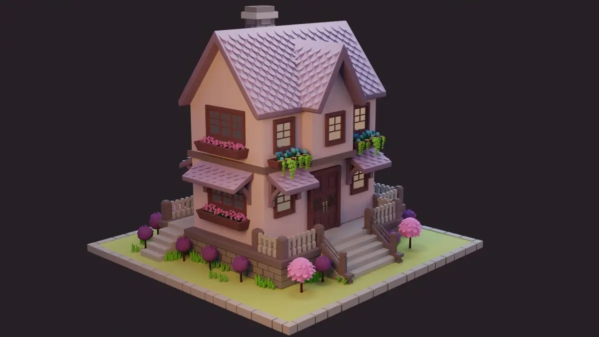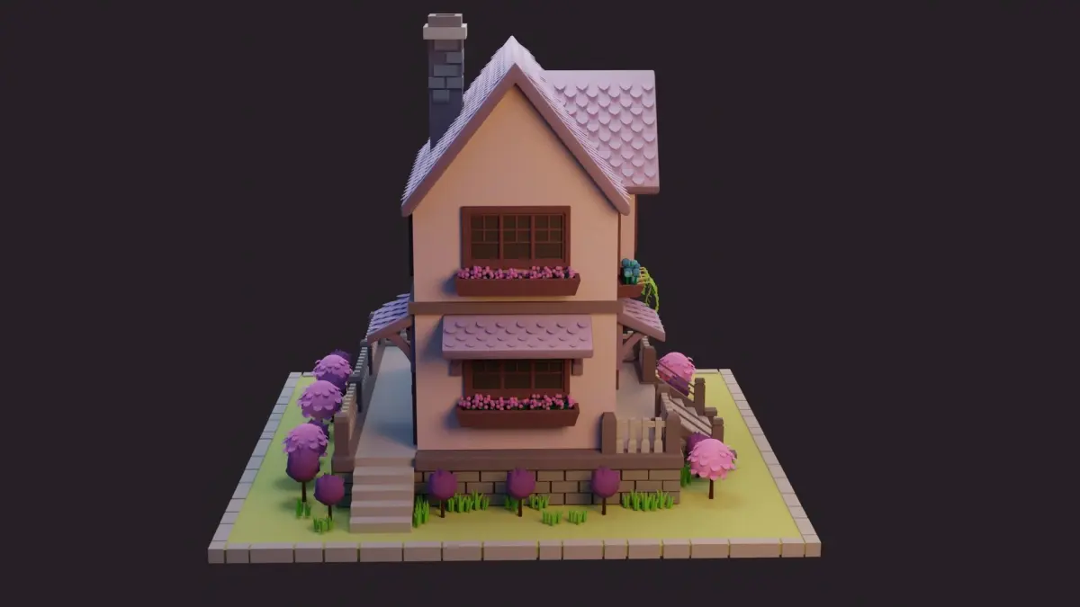 I created this low poly cartoon house using Blender 3.3.0. I used a 2d image as the reference.(house, ground and plants are seprated objects)