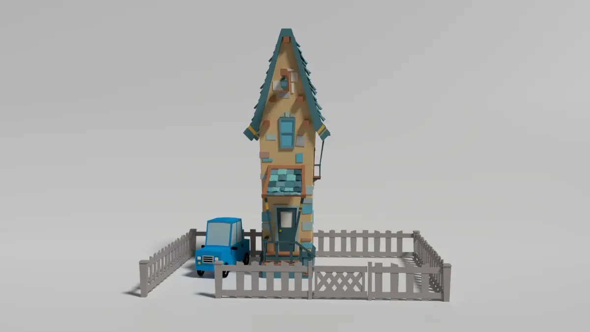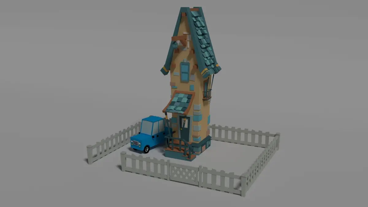 Cartoon-Style house and car scene, complete with textured materials on both models. Includes wooden fence and gate surrounding both models. Modeled in Blender. Both .blend and .obj files included.
