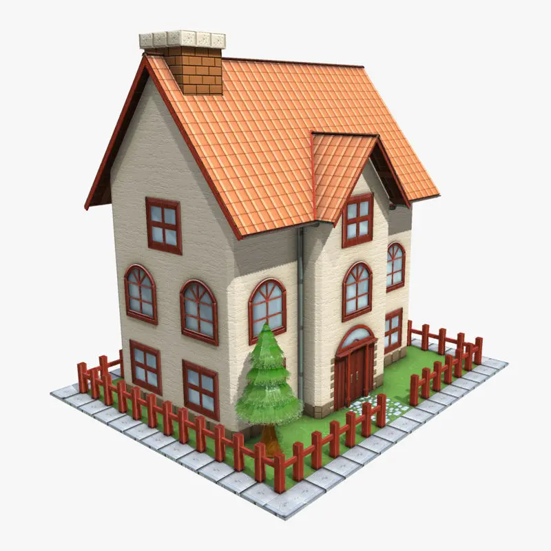 House element Single Uvwrap ( roof mesh, walls mesh, windows and other elements mesh) 4096x4096 Png Maps ( Difuse albedo, Normal Map, Specular map, Glossy Map).