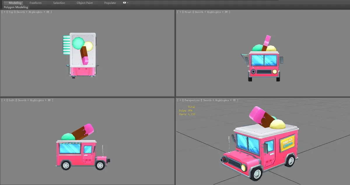 Cartoon ice cream truck - dining car Low-poly 3D model