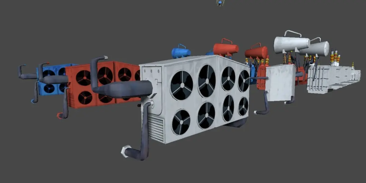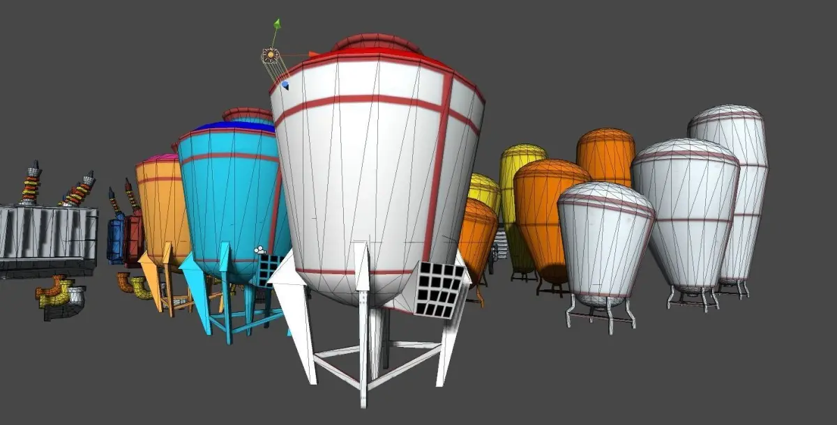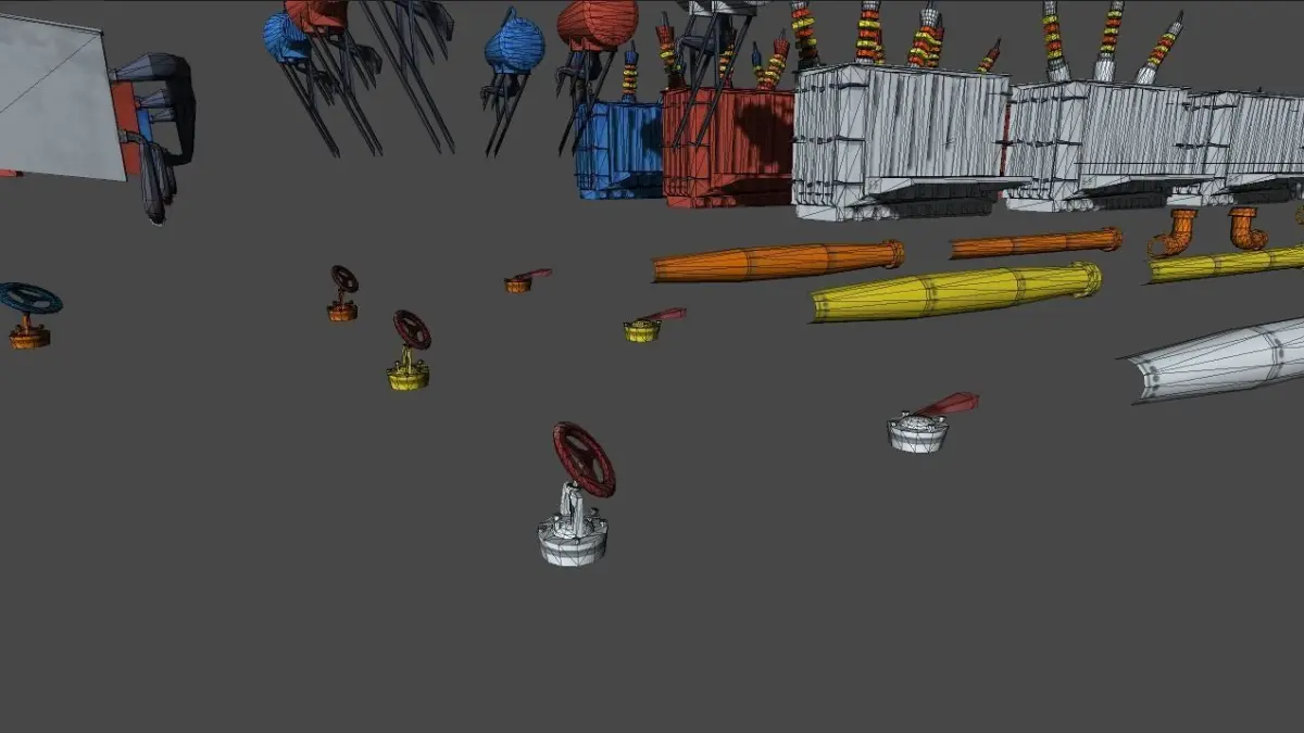 This package contains 26 different combineable cartoon industrial props.All of them come with 3 different texture sets.Textures-sizes between 512x512 to 1024x1024.