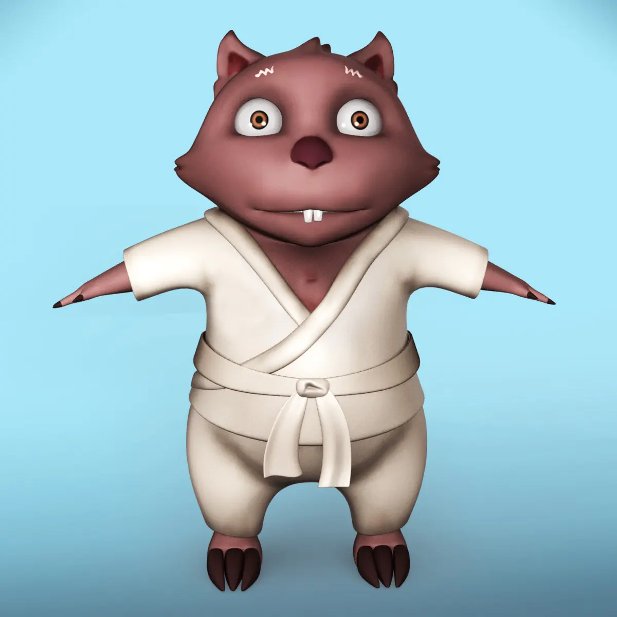 Cute karate chopping wombat in T pose low-poly 3d model ready for Rigging ,Animation Projects, Virtual Reality (VR), Augmented Reality (AR), games and other real-time apps.