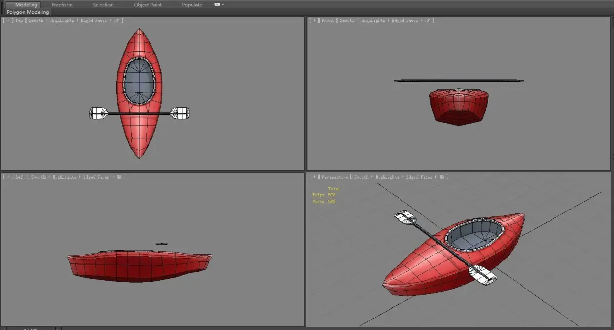 HomeCatalogCartoon kayak - red boat Low-poly 3D model