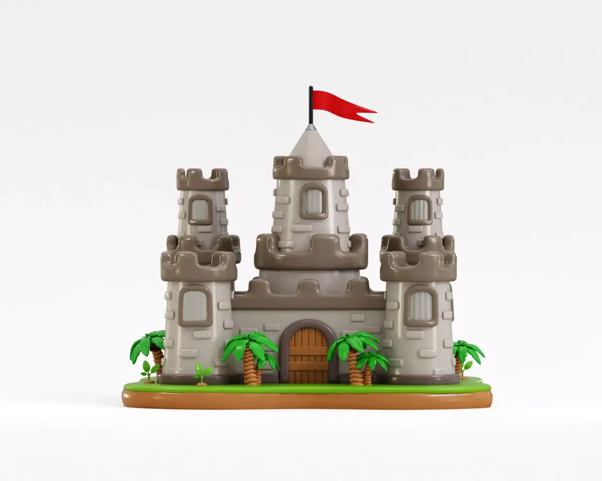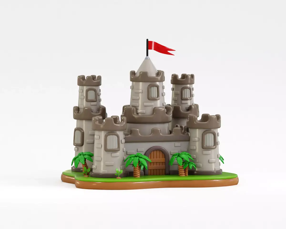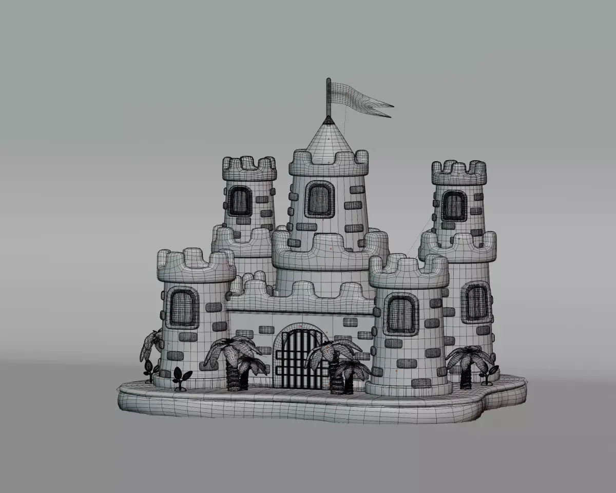Highly detailed model of a modern Cartoon Kingdom castle with tower.