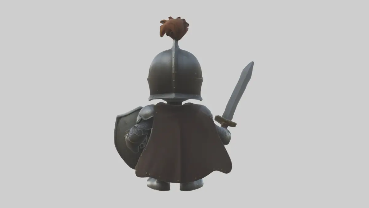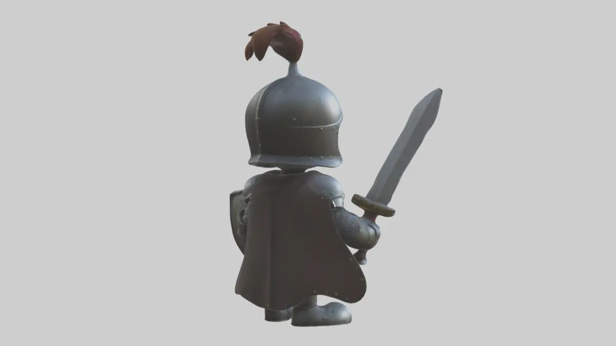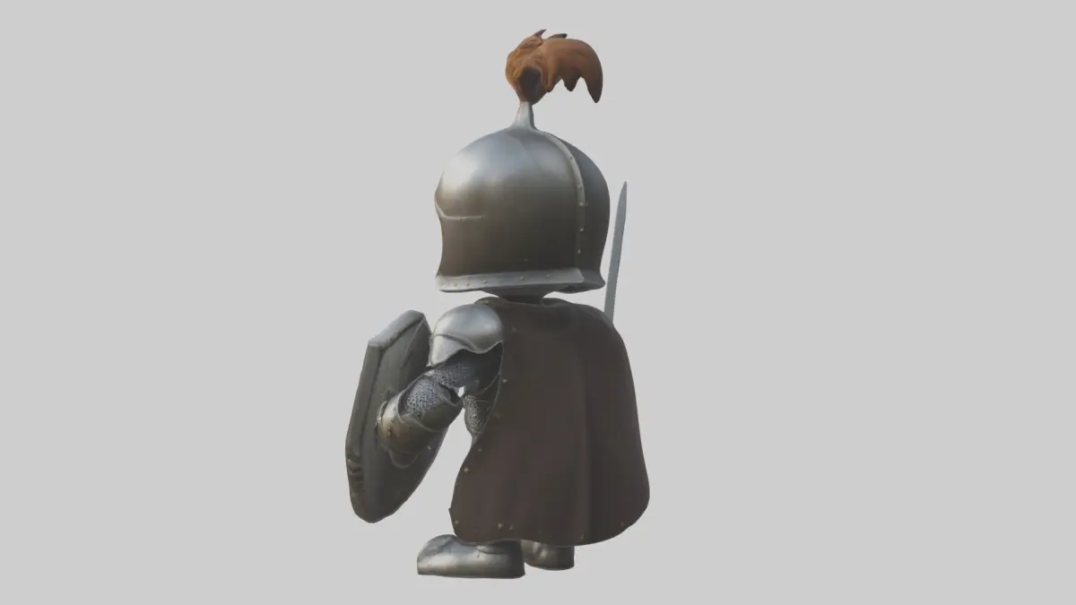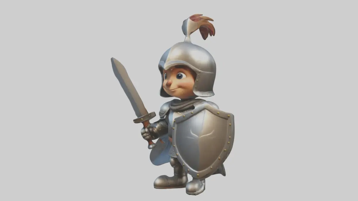 Cartoon knight, 3D model, medieval knight, armor, sword, shield, whimsical, fun, hero, fantasy, stylized, cartoonish, bright colors, game, animation