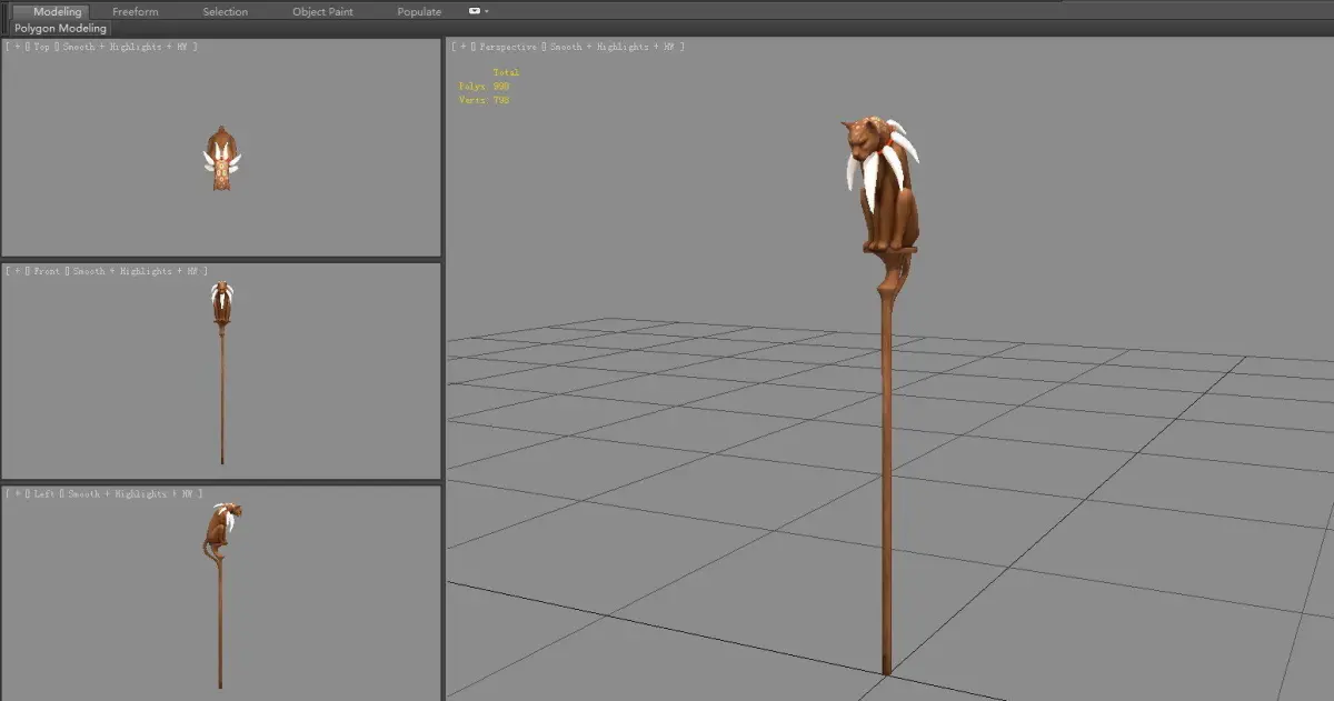 Cartoon leopard wand - wooden panther sculpture Low-poly 3D model