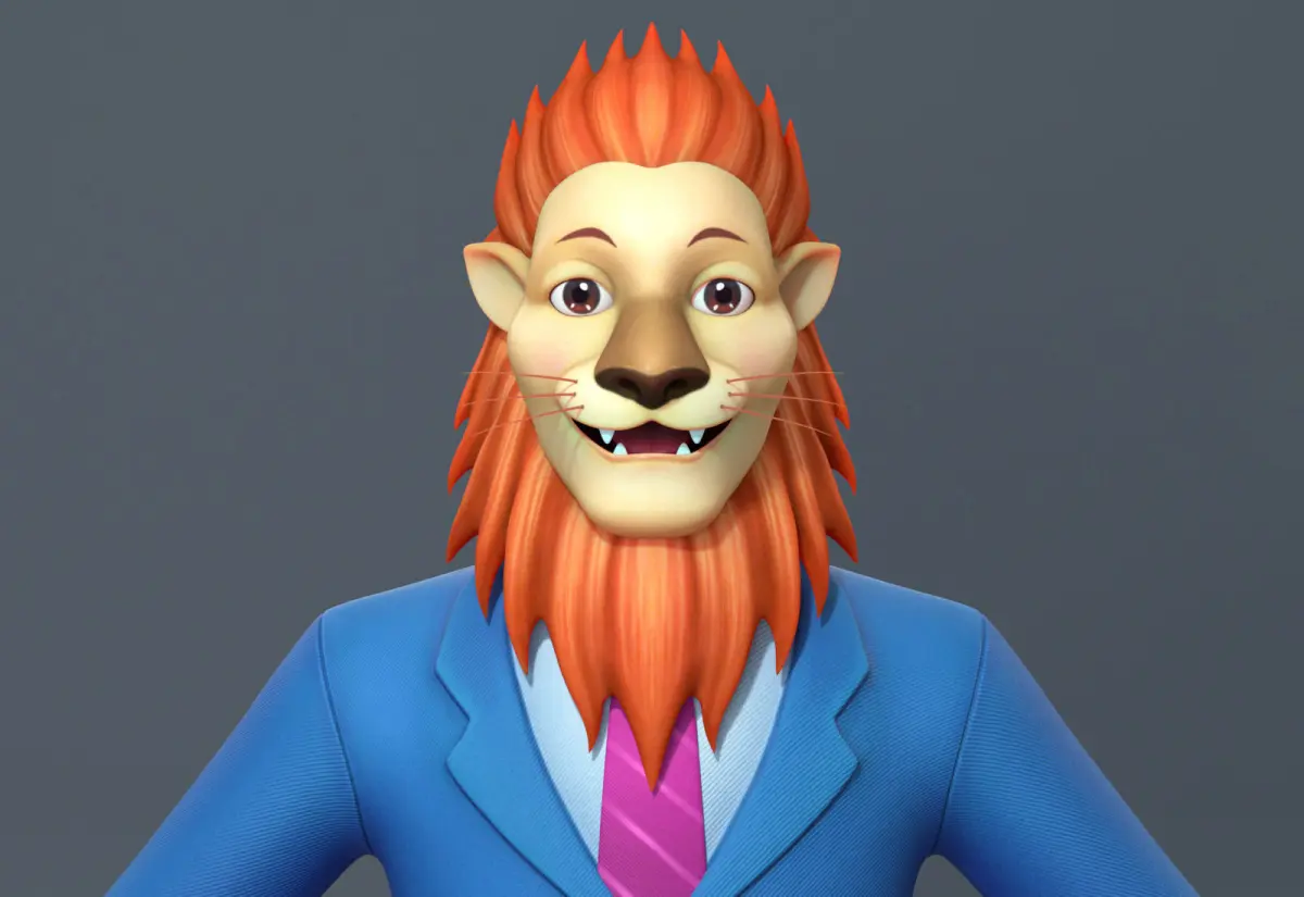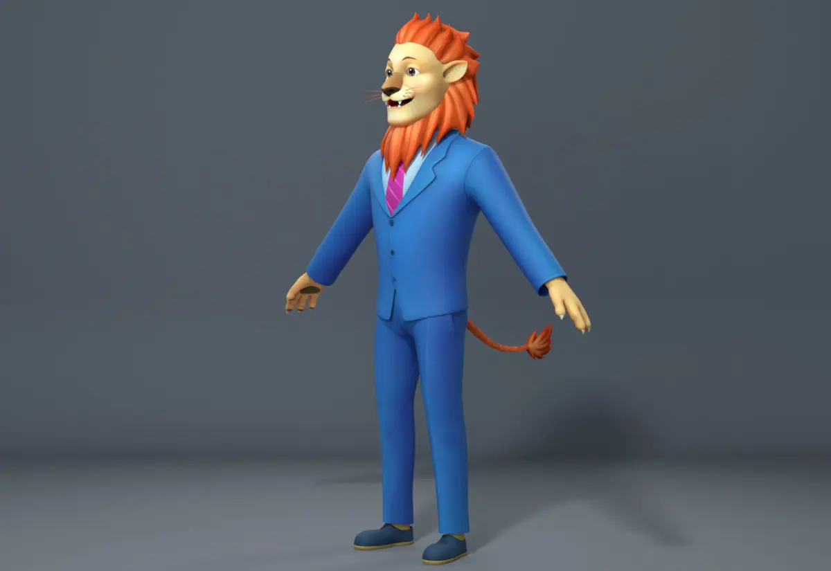 Cartoon lion business suit character Low-poly 3D model