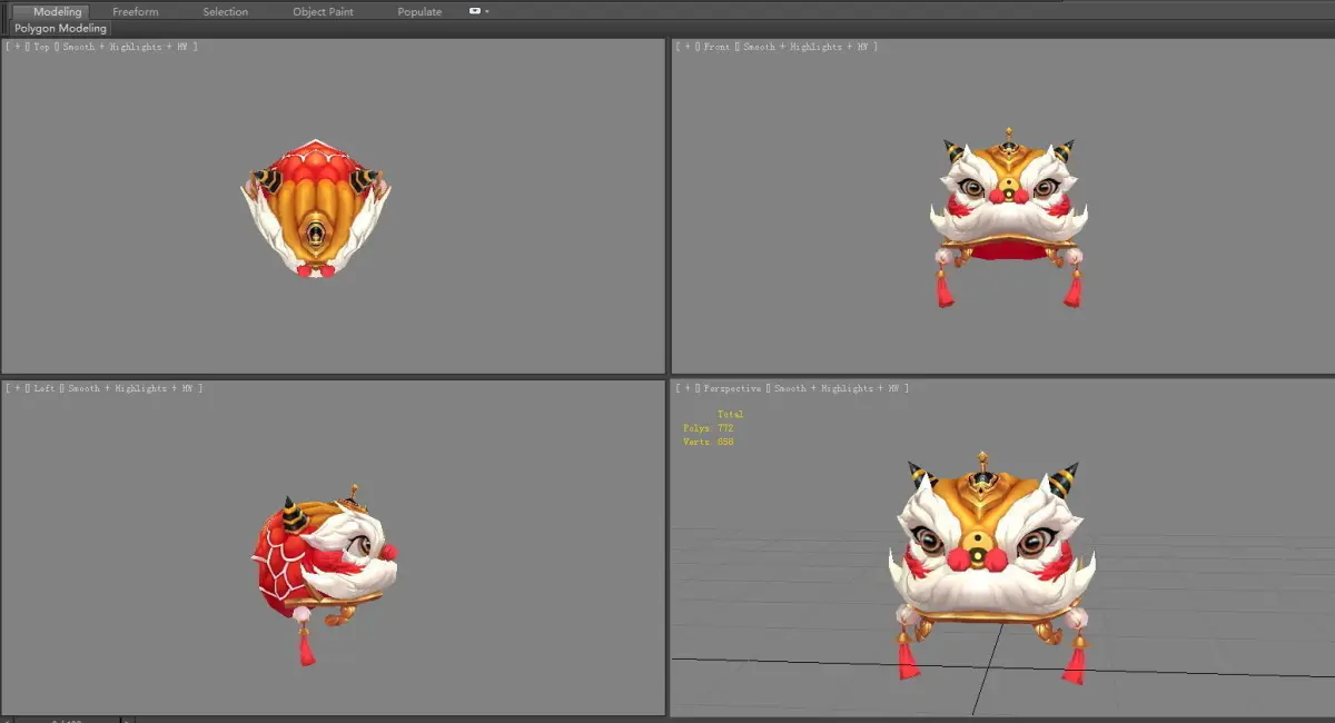 Cartoon lion dance head set Low-poly 3D model