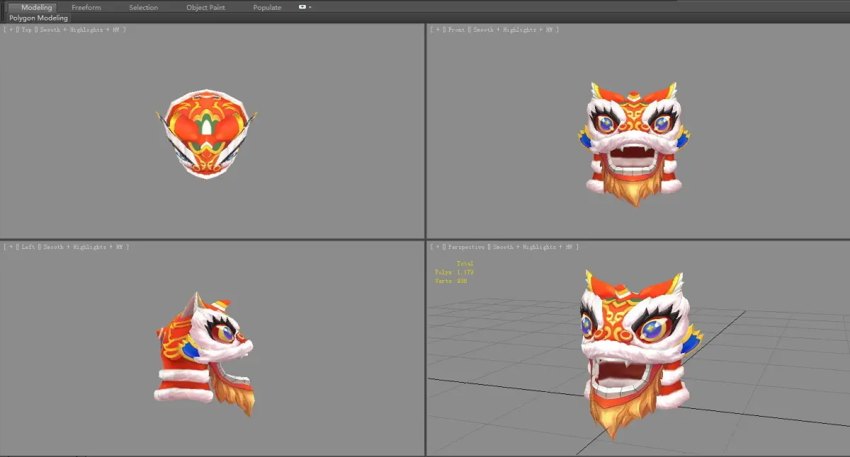 Cartoon lion dance head set Low-poly 3D model